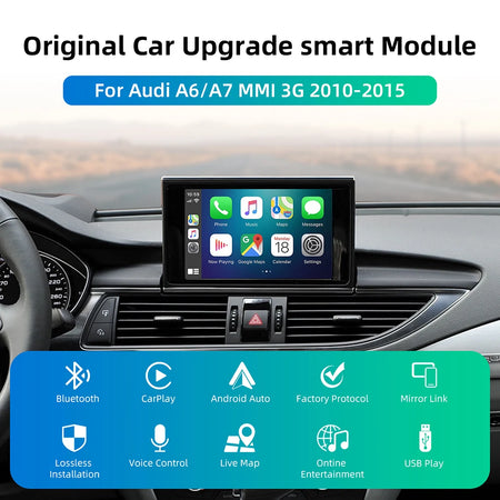 Ulepsz swoje Audi A6 lub A7 (2010–2015) dzięki bezproblemowemu doświadczeniu CarPlay i Android Auto, korzystając z dekodera Audi A6/A7 CarPlay i Android Auto Screen Upgrade. Zaprojektowany dla wyświetlaczy 6.5" lub 7" z platformą MMI 3G, ten dekoder typu plug-and-play integruje nowoczesne połączenia, nie rezygnując z czystego, oryginalnego wyglądu deski rozdzielczej. Ciesz się bezprzewodowym CarPlay i Android Auto, Mirror Link oraz odtwarzaniem z pamięci USB, wszystko to przy zachowaniu istniejących przycisków na kierownicy i fabrycznych kontrolerów do włączania i wyłączania CarPlay.