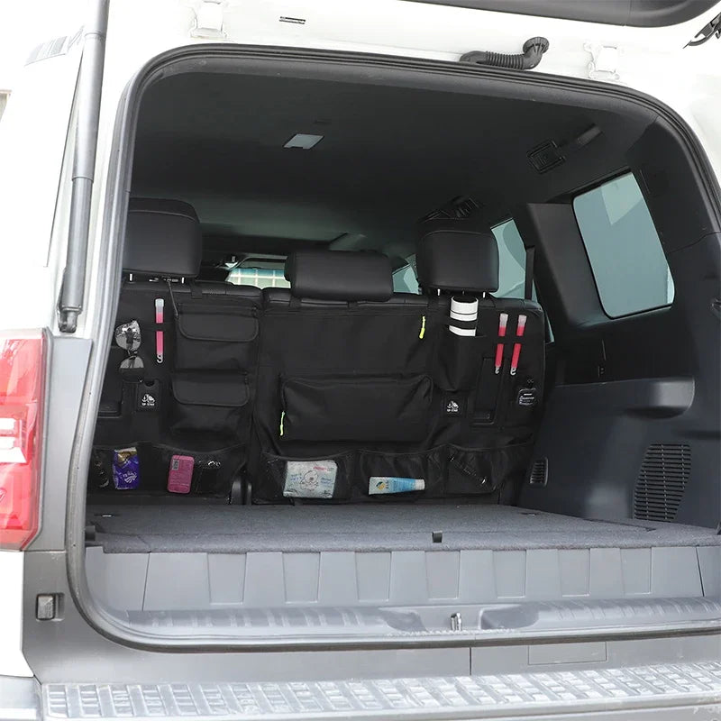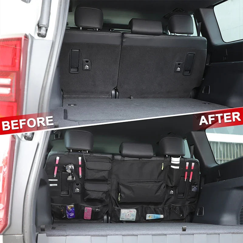 - Maksymalizuj przestrzeń za tylnym siedzeniem, tworząc dedykowaną, łatwo dostępną kieszeń na narzędzia, apteczki, kable i małe akcesoria.