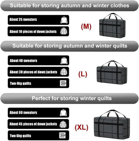 - Organizuj według sezonu: przechowuj zimowe lub letnie ubrania w jednej, przenośnej torbie, którą możesz nosić za wyściełane uchwyty.