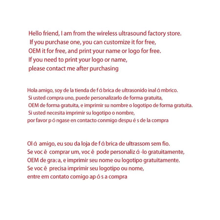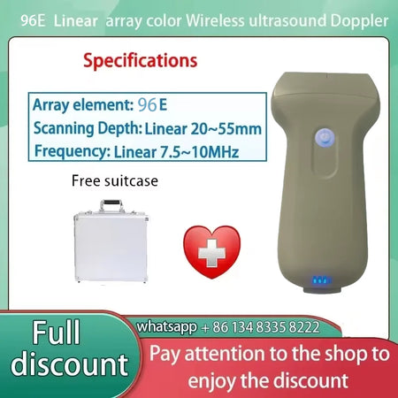 Poznaj przenośny bezprzewodowy skaner sondy ultradźwiękowej z WiFi Sonostar — kompaktowe, wysokowydajne rozwiązanie obrazujące zaprojektowane do opieki przy łóżku pacjenta, klinik i diagnostyki w ruchu. Ta bezprzewodowa sonda ultradźwiękowa zapewnia wyraźny tryb B i zaawansowane obrazowanie przez WiFi, kompatybilne z urządzeniami iOS, Android i Windows, dzięki czemu możesz natychmiast przeglądać, przechowywać i udostępniać skany. Spersonalizuj ją za darmo swoim imieniem lub logo i ciesz się wygodą zestawu podróżnego z dedykowanym etui na bagaż dla łatwego transportu.