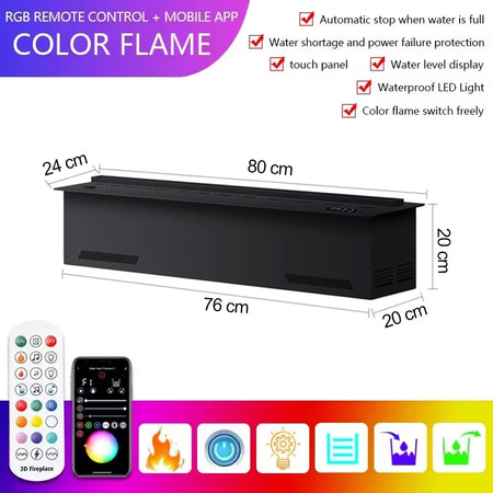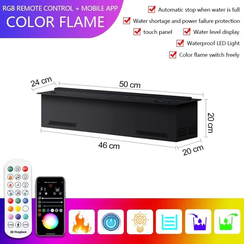 - Specjalne funkcje: Kontrola aplikacji Tuya, wielokolorowe płomienie, dotykowy efekt płomienia, wysoce wodoodporny design