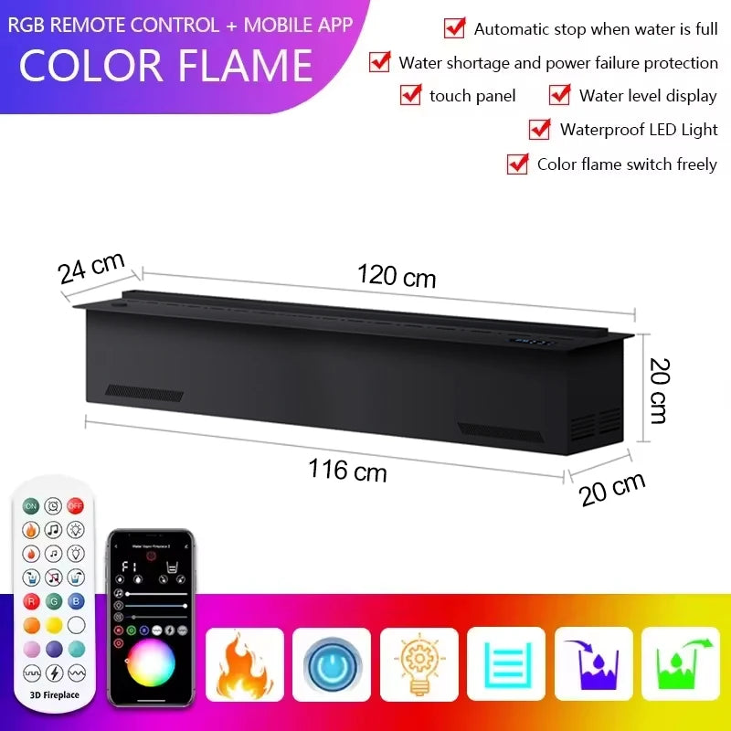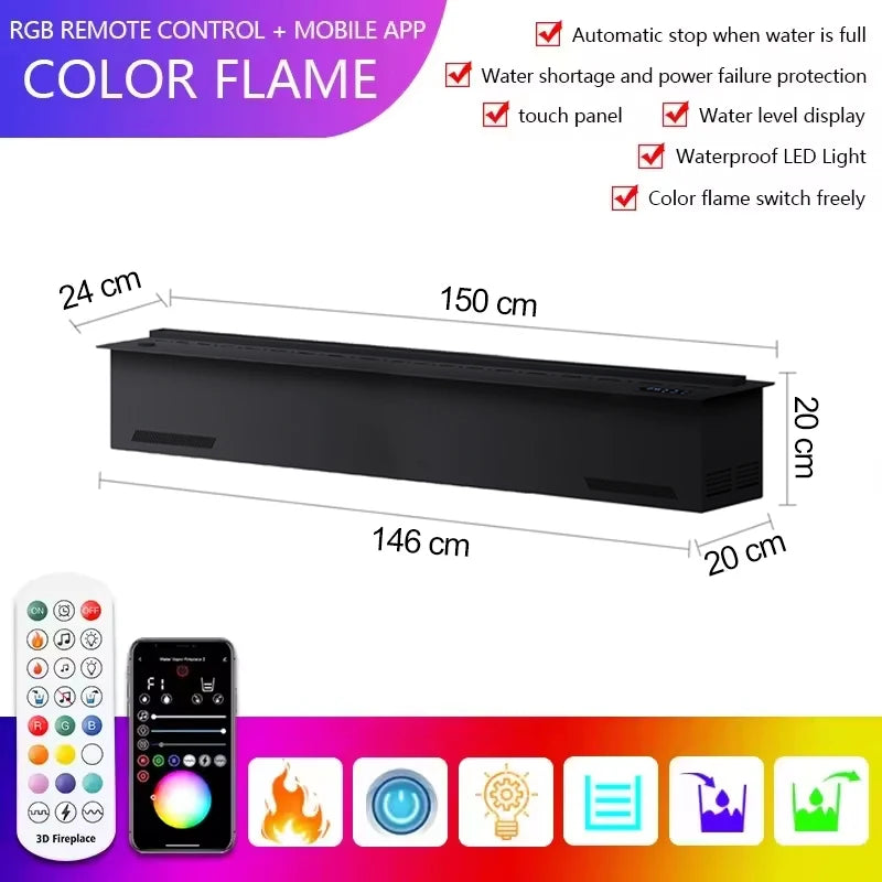 Doświadcz przytulnego blasku prawdziwego ognia z nowoczesną wygodą. Realistyczny elektryczny kominek 3D z kontrolą aplikacji Tuya wprowadza autentyczną atmosferę płomienia do twojej przestrzeni bez bałaganu czy ryzyka tradycyjnych ognisk. Ta immersyjna jednostka wykorzystuje oczyszczoną wodę do stworzenia realistycznego efektu płomienia 3D oświetlanego przez oświetlenie LED, dostarczając ciepłą, przytulną atmosferę, kiedy tylko chcesz. Sterowany za pomocą aplikacji Tuya i kompatybilny z wieloma kolorami płomienia, możesz dostosować nastrój - od subtelnego blasku żaru do żywego, kolorowego wyświetlenia - wszystko to przy jednoczesnym korzystaniu z energooszczędnej pracy. Z rozmiarami skalowymi do 1800 mm, ten kominek pasuje do szerokiej gamy pomieszczeń i stylów dekoracyjnych, co czyni go wszechstronnym dodatkiem do salonów, sypialni lub biur.