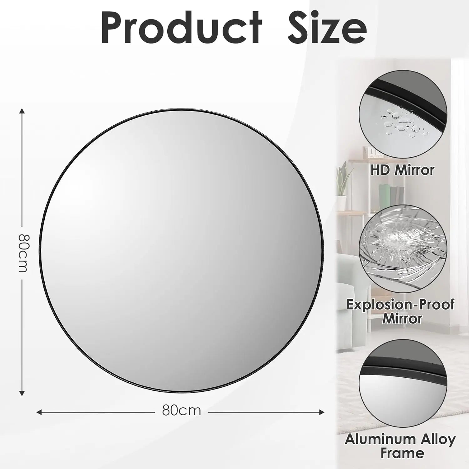 Podnieś swój wystrój dzięki Okrągłemu Lustru Ściennemu dostępnym w rozmiarach 60x60 cm lub 80x80 cm, z elegancką czarną szczotkowaną metalową ramą. Okrągłe lustro łączy luksusową głęboką ramę z nowoczesną sylwetką, aby wzmocnić światło i stworzyć efektowny punkt centralny w łazienkach, sypialniach, salonach, korytarzach lub przedsionkach. Wykonane ze szkła chemicznego ze szkłem hartowanym o grubości 3 mm, zapewnia czyste, pozbawione zniekształceń odbicie, jednocześnie stawiając na bezpieczeństwo. Głęboka krawędź 3,5 cm i bezszwowe wykończenie podkreślają jego ekskluzywny wygląd, czyniąc z niego dekoracyjną sztukę, a także funkcjonalne lustro. Praktyczny metalowy haczyk z tyłu umożliwia szybki i bezpieczny montaż na ścianie, co ułatwia instalację. Pochodzenie: Chiny kontynentalne. Certyfikaty: CE, FCC, RoHS. Styl: nowoczesny. Typ: Lustra z ramą, montowane na ścianie.