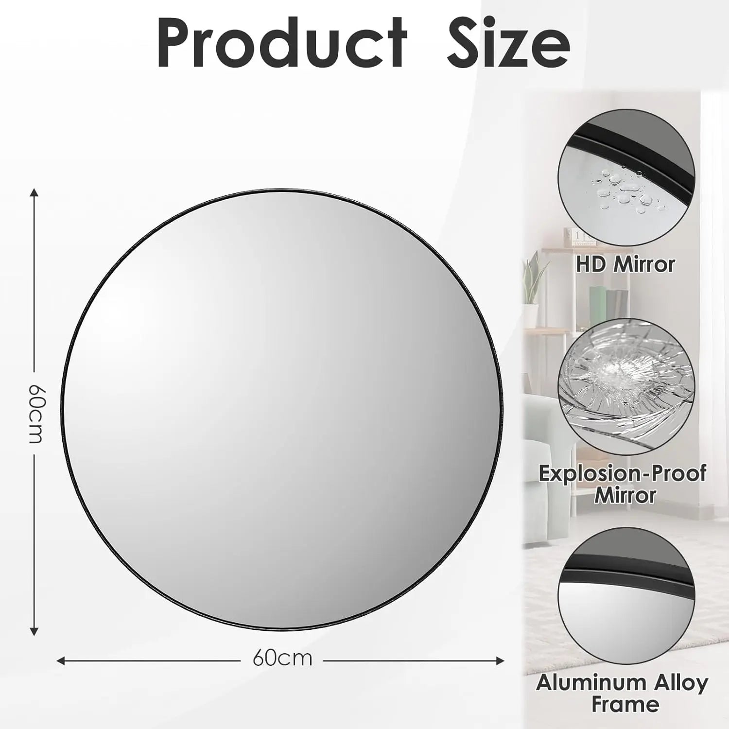 Zaprojektowane z myślą o wszechstronności, lustro nadaje się do łazienek, salonów, sypialni, hoteli, sklepów z kosmetykami i innych. Dostępne w dwóch rozmiarach pozwalają wybrać dokładnie to, co pasuje do Twojej przestrzeni, a klasyczny okrągły kształt i czarna szczotkowana rama uzupełniają szeroką gamę dekoracji — od minimalistycznej po industrialny szyk.