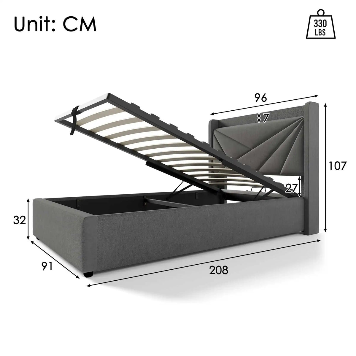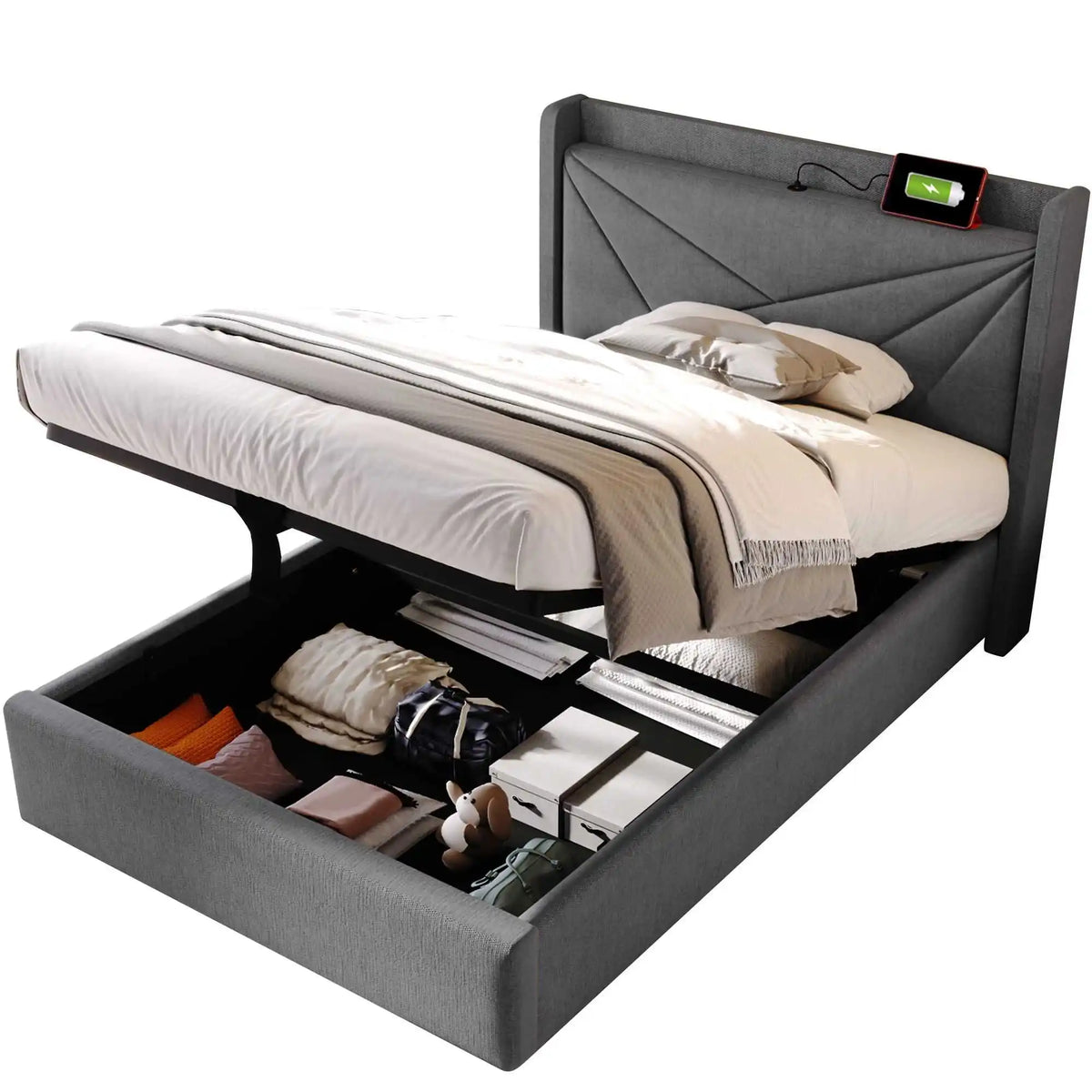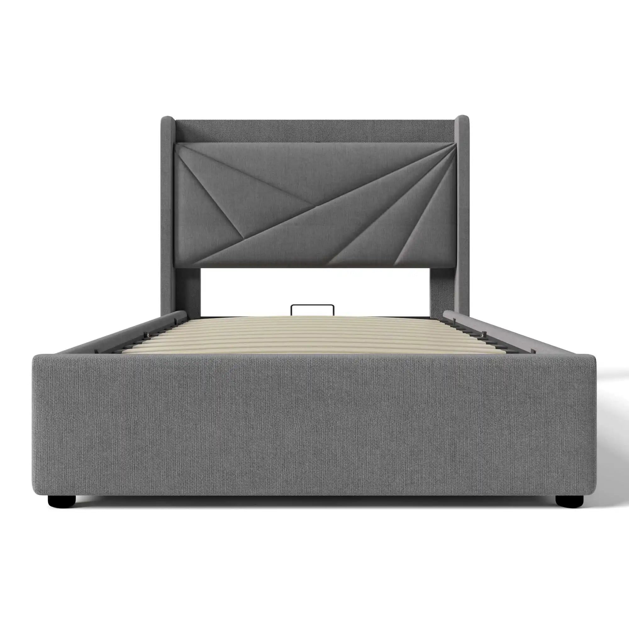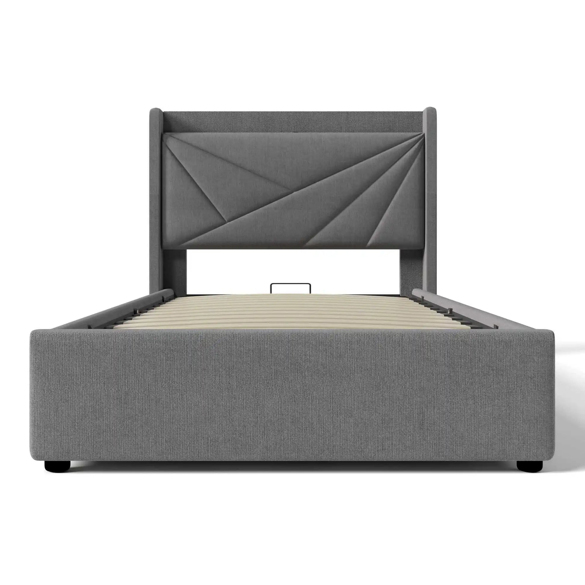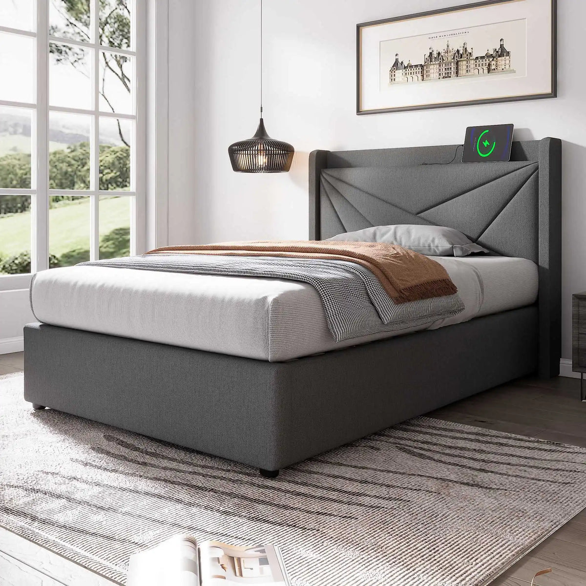 Poznaj Łóżko pojedyncze z pojemnikiem i ładowarką USB C Linen 90x200 — stylowe, inspirowane lnem łóżko pojedyncze zaprojektowane do kompaktowych pokoi i nowoczesnych przestrzeni. Wykonane z solidnej ramy żelaznej i listew z litego drewna, zapewnia niezawodne wsparcie do 300 funtów, oferując jednocześnie obszerną przestrzeń pod łóżkiem na przechowywanie koców, poduszek i pościeli, które można schludnie schować. Geometryczne wezgłowie posiada nowoczesne wykończenie z dzianiny skośnej dla współczesnego wyglądu oraz grube, przyjazne dla skóry wezgłowie wypełnione miękką gąbką dla wygodnego wieczornego relaksu lub czytania. Zintegrowana funkcja ładowania USB i Type-C pozwala na ładowanie smartfonów, tabletów lub innych urządzeń tuż przy głowie łóżka, dzięki czemu pozostajesz naładowany bez dodatkowych kabli zaśmiecających stolik nocny. Należy zauważyć, że rama łóżka jest wysyłana w dwóch pudełkach, aby chronić elementy podczas transportu i może dotrzeć w różne dni. Po złożeniu to łóżko oferuje zarówno praktyczne przechowywanie, jak i niezawodny codzienny komfort — wszystko w jednym eleganckim opakowaniu.