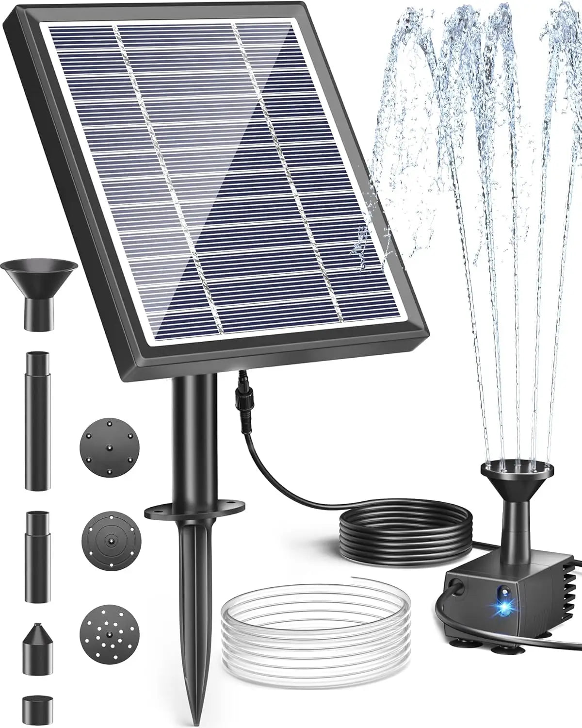 Wykorzystaj moc słońca z zestawem Solar Fountain Kit For Bird Bath. Ta zewnętrzna pompa wodna 5V/2,5W została zaprojektowana, aby utrzymywać cyrkulację wody w kąpielach dla ptaków, kąpielach dla kolibrów, małych stawach, a nawet akwariach. Bez baterii, bez prądu — tylko bezpośrednie światło słoneczne zasila niezawodną fontannę, która przyciąga ptaki i ożywia Twój ogród. Pompa jest zabezpieczona przed pracą na sucho, automatycznie wyłączając się, gdy poziom wody jest niski, co chroni urządzenie i wydłuża jego żywotność. Wyposażona w panel słoneczny w 100% szklany o doskonałej przepuszczalności światła, zapewnia stały, trwały natrysk nawet w słoneczne dni. Łatwa do złożenia w kilka minut, ta zestaw jest idealną szybką modernizacją każdego słonecznego miejsca na zewnątrz.