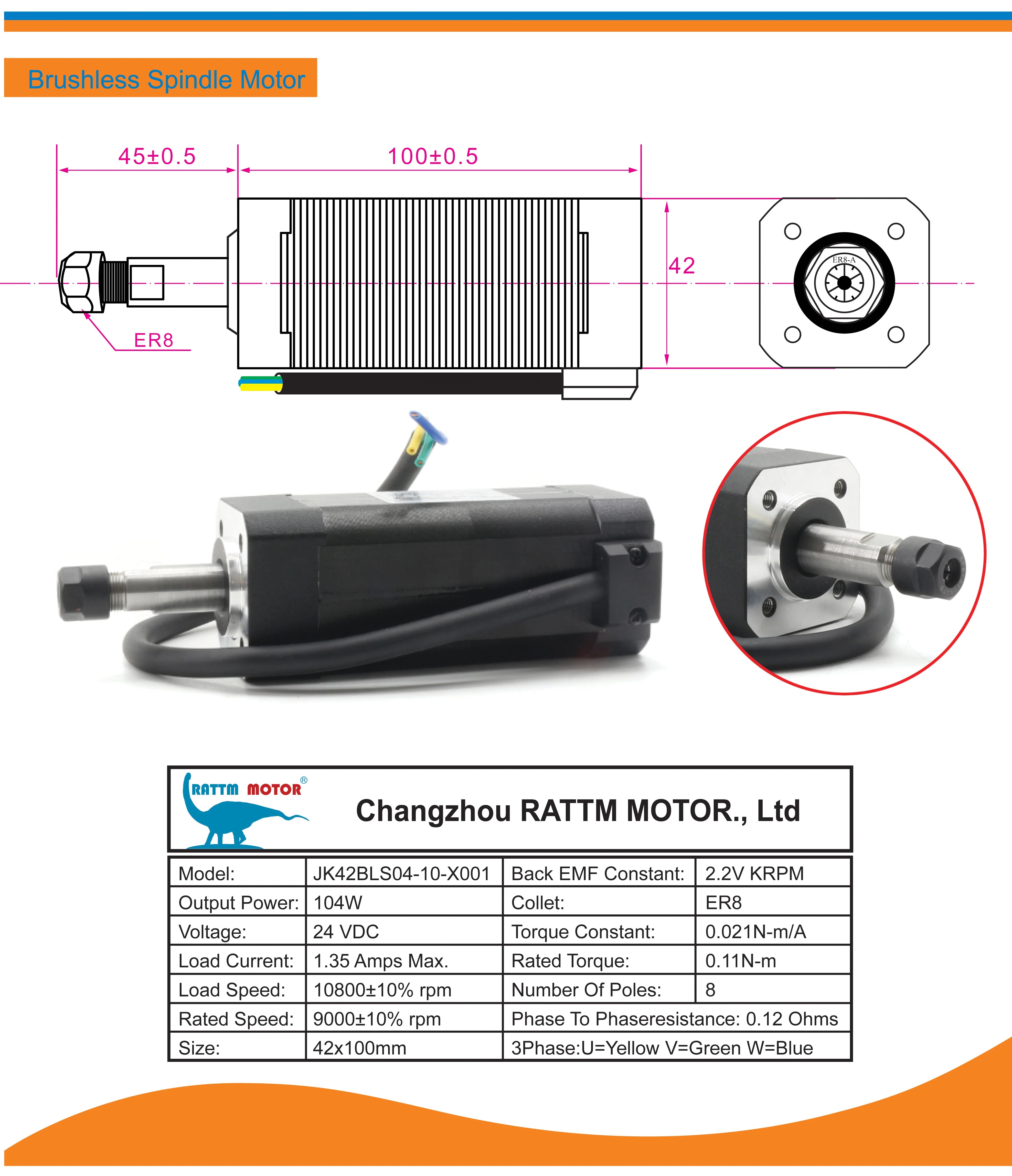 104W ER8 bezszczotkowy zestaw wrzeciona CNC z napędem DBD200 24V i zaciskiem wrzeciona