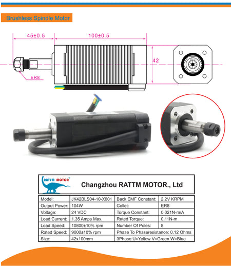 Prezentujemy zestaw CNC 104W ER8 z bezszczotkowym wrzecionem i sterownikiem DBD200 24V oraz zaciskiem wrzeciona — kompaktowe, wysokowydajne rozwiązanie do precyzyjnego frezowania i trwałej pracy. Zestaw łączy 104W bezszczotkowe wrzeciono z trójfazowym kontrolerem BLDC i solidnym sterownikiem 24V, aby zapewnić niezawodne działanie, niską temperaturę i długą żywotność podczas wymagających zadań CNC. Wrzeciono osiąga do 10800 obr./min z maksymalnym momentem obrotowym 0,11 N·m, co umożliwia czyste, precyzyjne cięcia w materiałach metalowych i kompozytowych. Używa standardowego zacisku ER8 (ER11 w pierwszej partii; nowsze partie używają ER8) do szybkich zmian narzędzi i solidnego mocowania. Wszystkie urządzenia elektroniczne i mechaniczne, urządzenia i maszyny sprzedawane przez InterCyprus do krajów UE są certyfikowane CE i mają dwuletnią gwarancję. Zapewniamy jakość i zaufaną obsługę od 2002 roku na intercyprus.com.