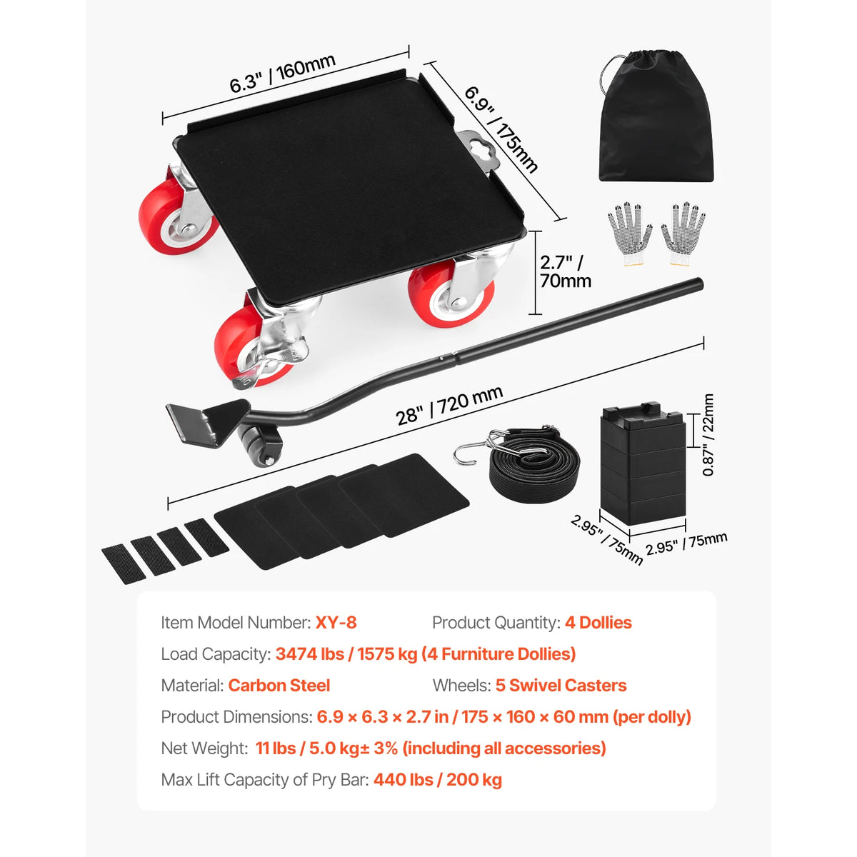 - Kompleksowe rozwiązanie do przeprowadzek: Zawiera łom do podnoszenia i pozycjonowania przedmiotów przy minimalnym wysiłku, zmniejszając obciążenie i wysiłek.
