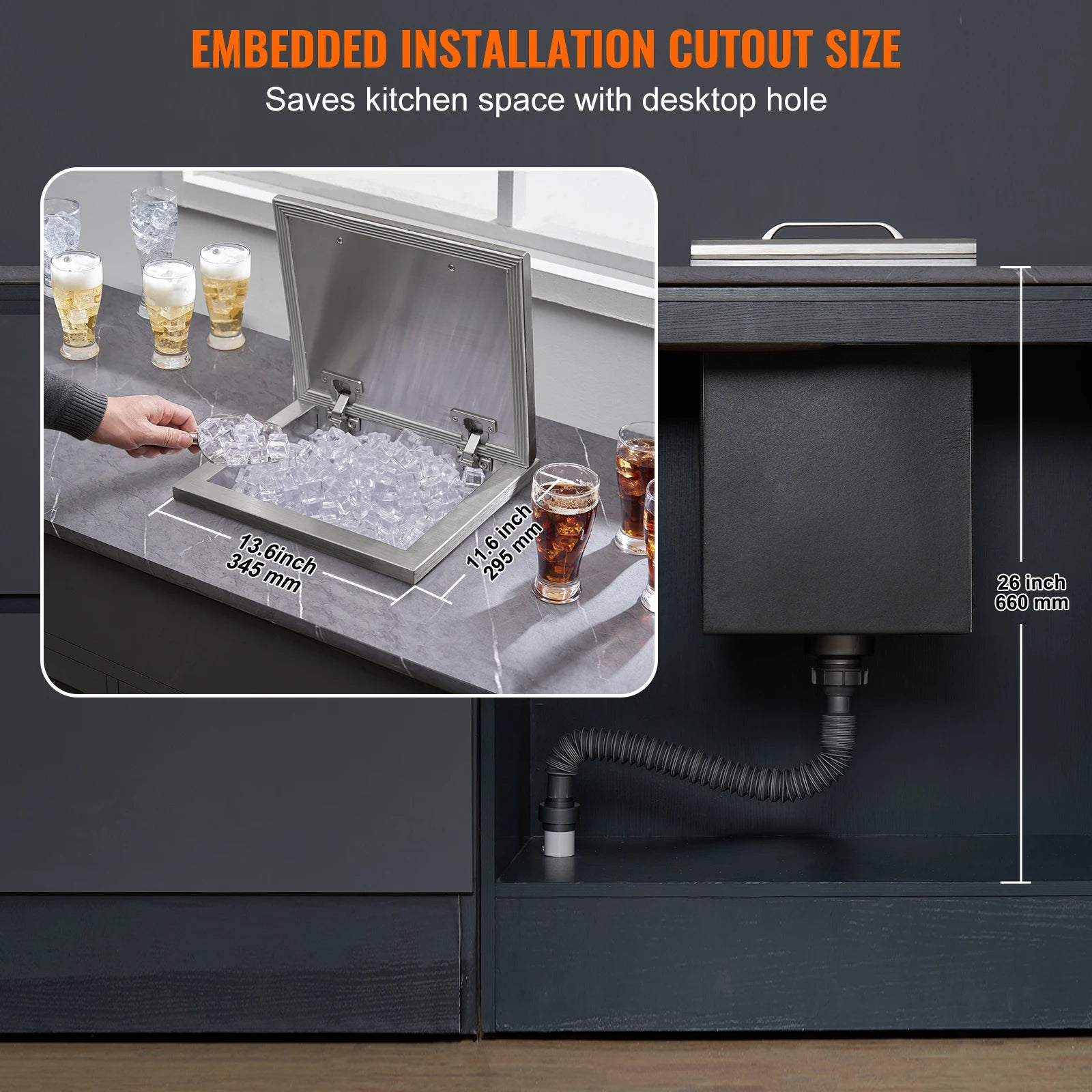 Zapewniona efektywna praca, pojemnik na lód zawiera kompletny zestaw akcesoriów do odprowadzania wody oraz rurkę wodną w stylu filtra do szybkiej ewakuacji wody i schludnej konserwacji. Jego wbudowany projekt oszczędza cenną przestrzeń na blacie, co czyni go idealnym do lad z napojami, hoteli oraz kuchni zarówno wewnętrznych, jak i zewnętrznych.