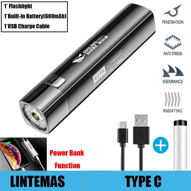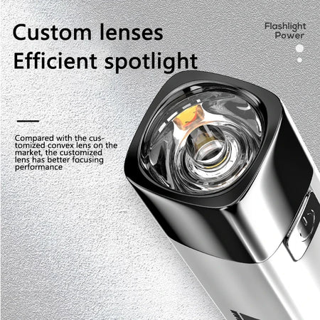 Latarka LED z akumulatorem USB, obudowa ABS i bateria 18650