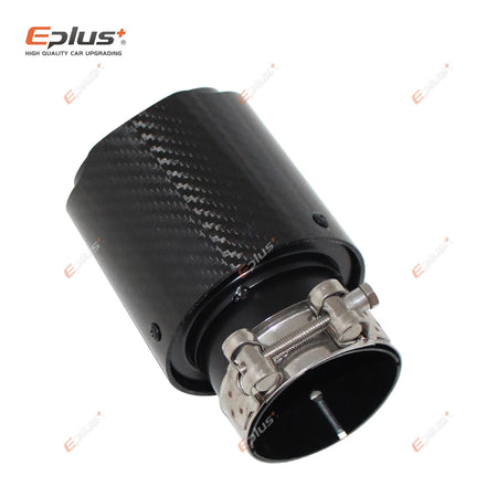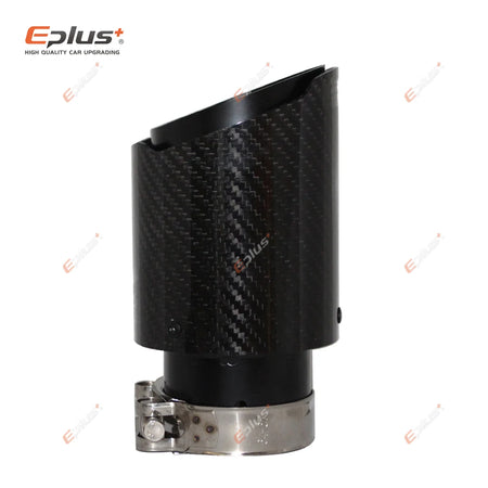 Końcówka tłumika z włókna węglowego do samochodu, błyszczące czarne wykończenie, wygląd ze stali nierdzewnej
