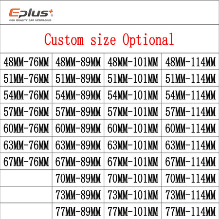 Rozmiary są elastyczne, aby pasowały do wielu konfiguracji: dostępne rozmiary wejścia to 51, 54, 57, 60, 63, 67, 70, 73 i 77 mm, z opcjonalnymi rozmiarami końcówki 76, 89, 101 i 114 mm. Całkowita długość wynosi 170 mm. Jeśli wymagany rozmiar nie jest wymieniony, możesz wybrać opcję Niestandardowy, aby złożyć zamówienie i pozostawić szczegóły rozmiaru w swojej wiadomości.