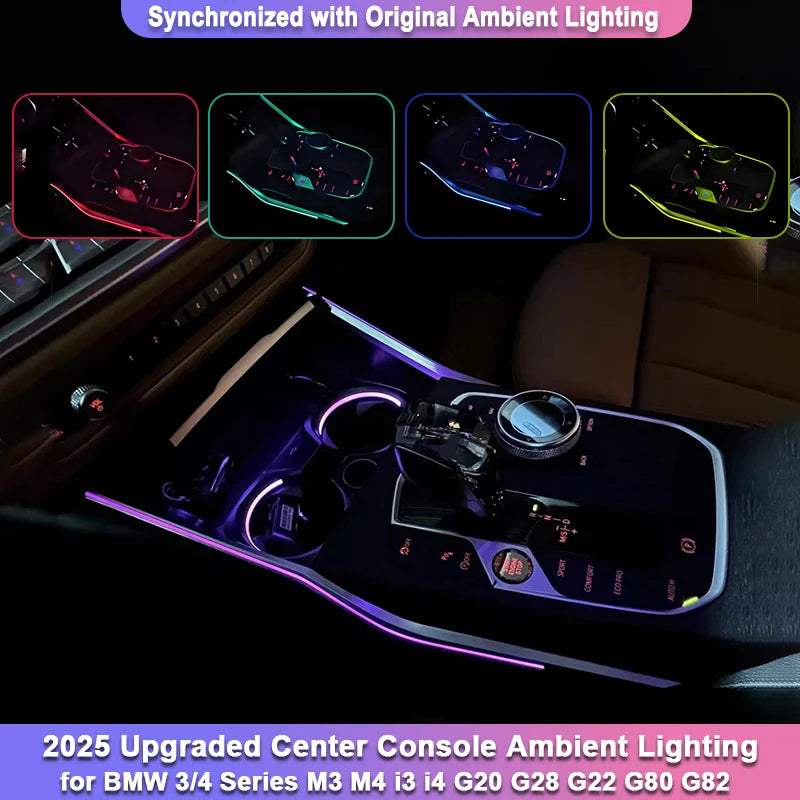 Oświetlenie ambientowe konsoli centralnej BMW Serii 3/4 z oryginalnym wykończeniem ABS Ambient Sync