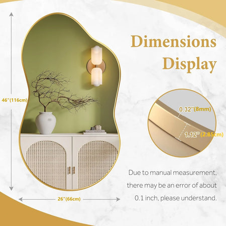 Podnieś swój przestrzeń dzięki Dekoracyjnemu Lustrze Ściennemu z nieregularną metalową ramą. Zaprojektowane do nowoczesnych wnętrz, to 8-calowe lustro w ramie wnosi odrobinę współczesnej elegancji do łazienek, salonów, sypialni, hoteli i sklepów kosmetycznych. Wykonane z stopu cynku i szkła, zapewnia trwałe, wolne od zniekształceń odbicie w kompaktowym, oszczędzającym miejsce opakowaniu. Samodzielna instalacja umożliwia szybki i łatwy montaż na każdej ścianie, a nieregularny kształt dodaje wizualnego zainteresowania i osobowości twojemu wystrojowi. Funkcja powiększania pomaga w precyzyjnym makijażu i pielęgnacji, dając wyraźny, zbliżony widok wtedy, gdy najbardziej go potrzebujesz.