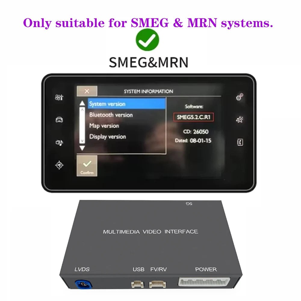 Moduł dekodera zachowuje oryginalny wyświetlacz deski rozdzielczej i kontrolki SMEG/MRN (pokretło i przyciski na kierownicy), co zapewnia prawdziwe uczucie OEM. To instalacja typu plug-and-play, nieinwazyjna, która minimalizuje zmiany w okablowaniu, odblokowując nowoczesne funkcje i wygodną obsługę bez użycia rąk.