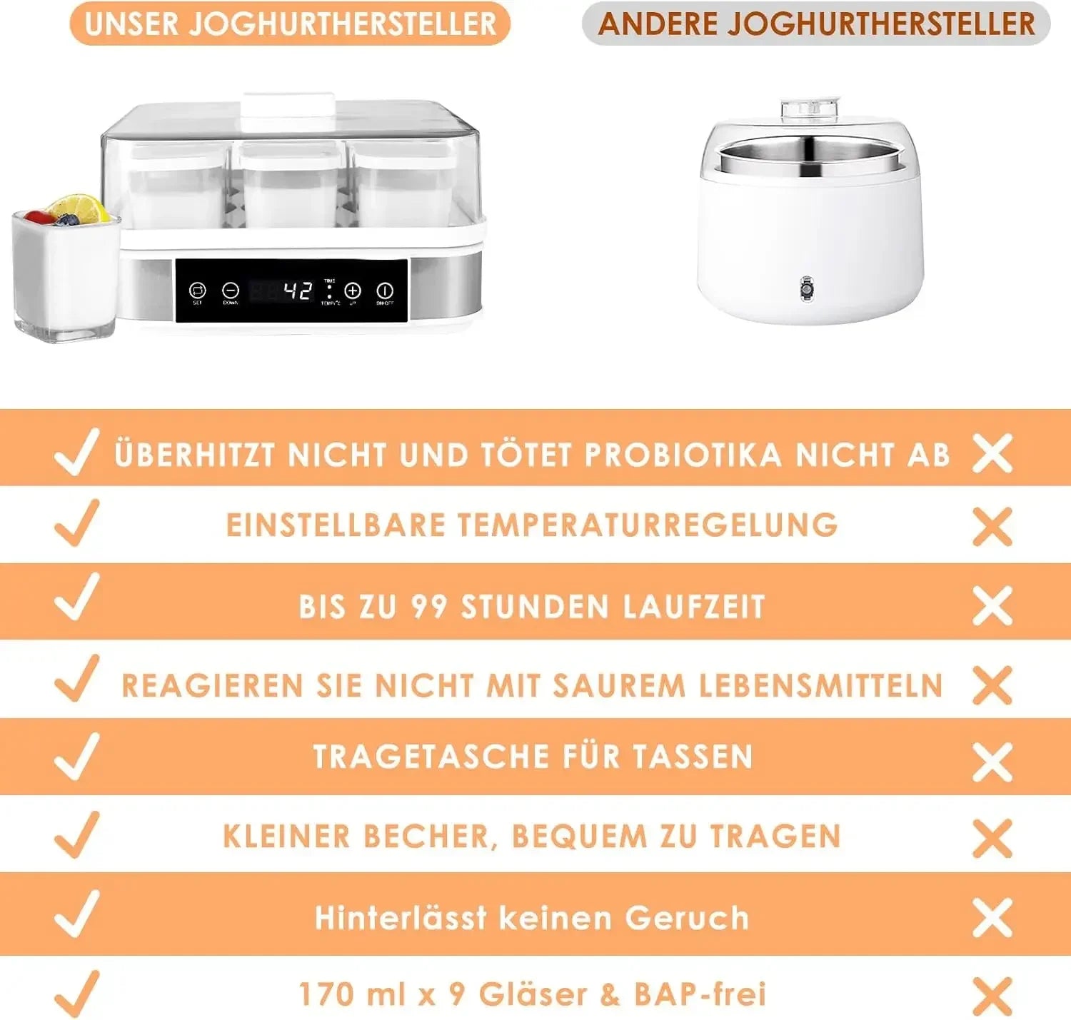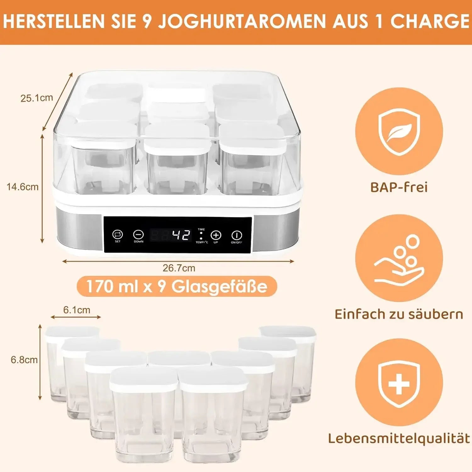 Cyfrowa maszyna do jogurtu z kontrolą temperatury 9 filiżanek