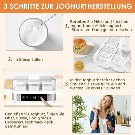 - Ciesz się świeżym, naturalnym jogurtem w domu bez sztucznych dodatków, barwników i konserwantów.