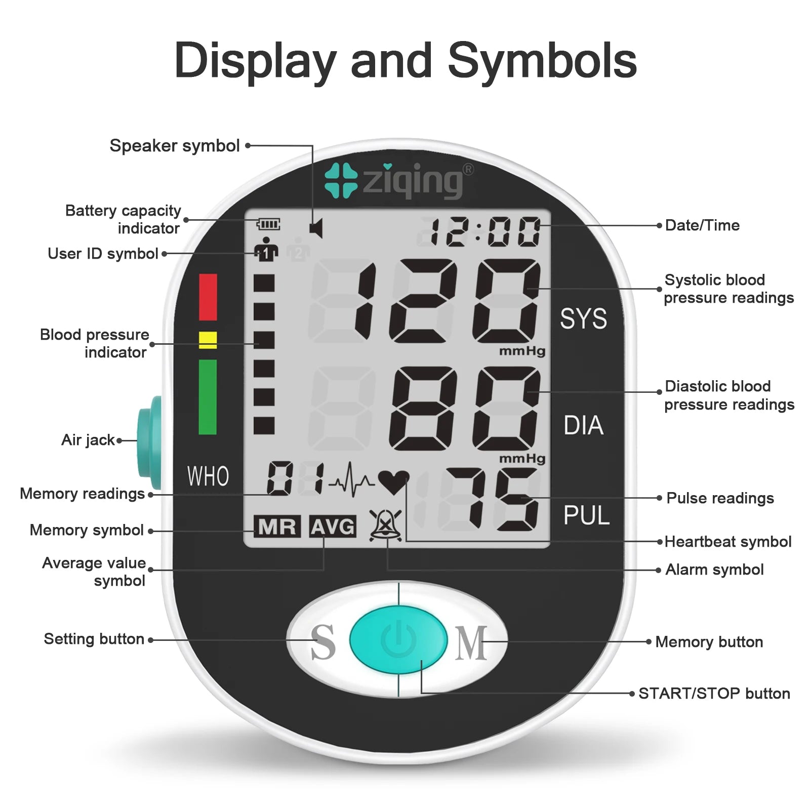 - Ziqing Arm Blood Pressure Monitor z mankietem (pasuje na 22–44 cm)