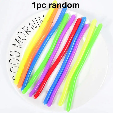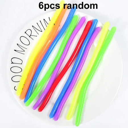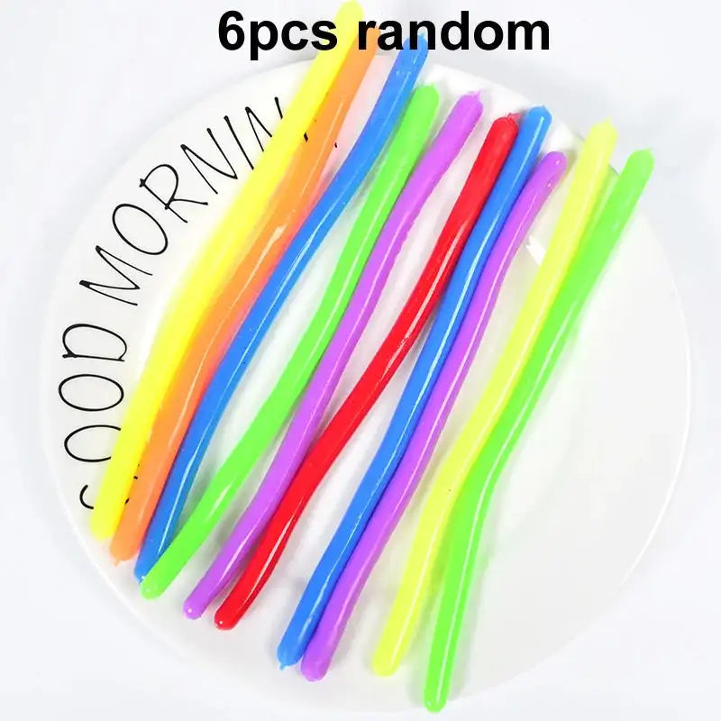 1-6PCS Funny Unicorn Pull Worm Noodle Fidget Toys Stretch String TPR Rope Anti Stress Toys String Stress Relief Autism Vent Toy