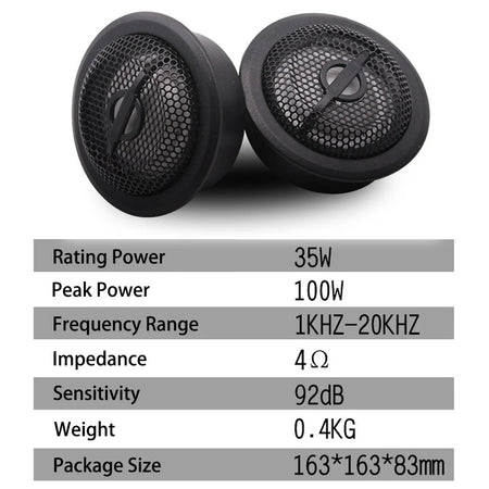 Enhance your car audio with the Universal Car Tweeter Speaker HI-H7 from ZUIDID. This compact 25mm silk dome tweeter delivers smooth, high-fidelity highs that breathe life into every track. With a wide frequency range of 1 kHz–20 kHz and 92 dB sensitivity, you’ll hear crisp cymbals, vivid vocals, and sparklingDetail without harshness. The 4 ohm impedance makes it a versatile upgrade for a wide range of head units and amplifiers, while the 12 V system keeps installation simple for most vehicles. Rated for up to 100 W peak and 35 W continuous power, the HI-H7 is designed to lift the treble performance without overwhelming your existing speakers. Its universal fit and Hi-Fi craftsmanship make it a practical, value-driven upgrade for any car audio setup.