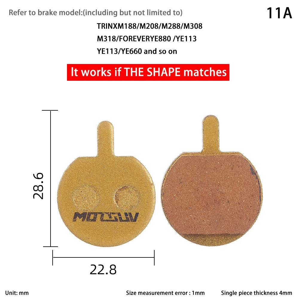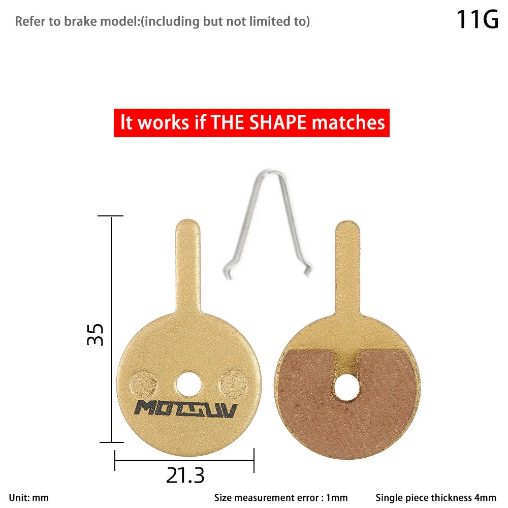 Copper Base Bike Brake Pads – Broad Disc Brake Compatibility: High-performance copper-base brake pads engineered for reliable stopping power on line-pulling disc brake systems. Gold finish, multiple sizes available for broad compatibility and easy replacement.
