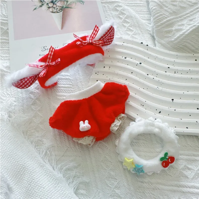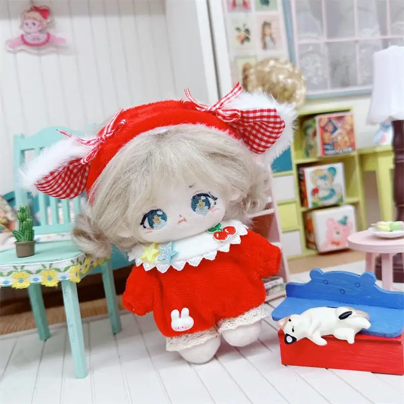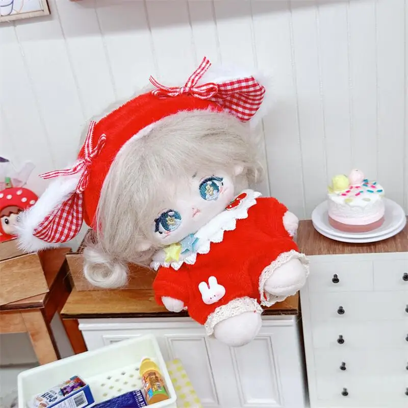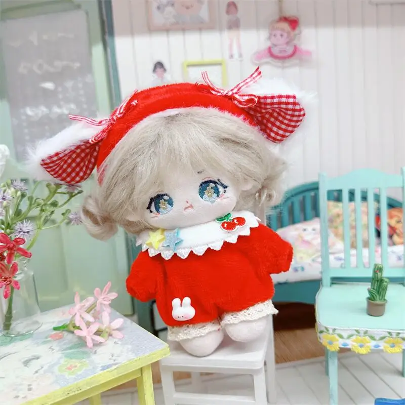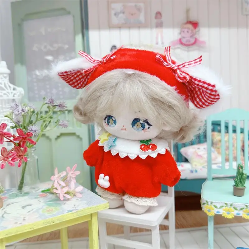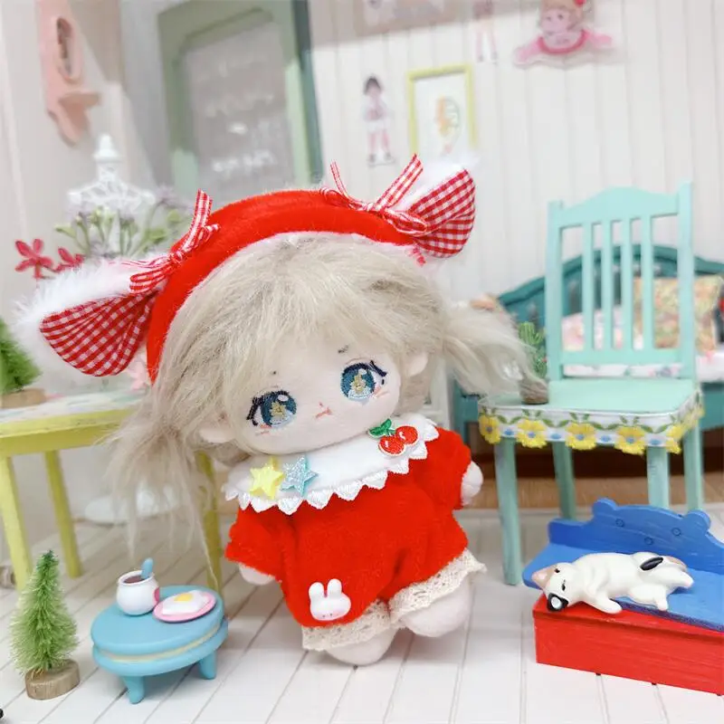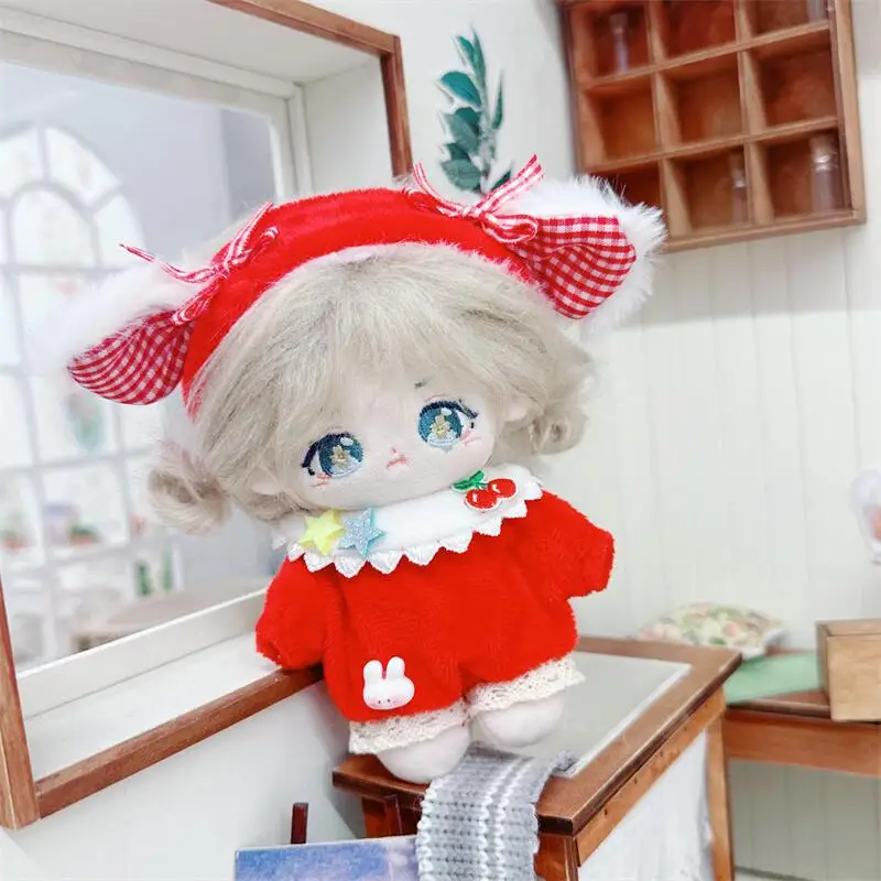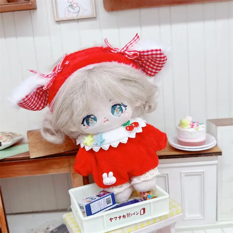 10cm Cute Sweet Cherry Red Set Plush Doll Kawaii Stuffed Soft Idol Cotton Doll DIY Clothes Accessory for Girls Kids Fans Gifts