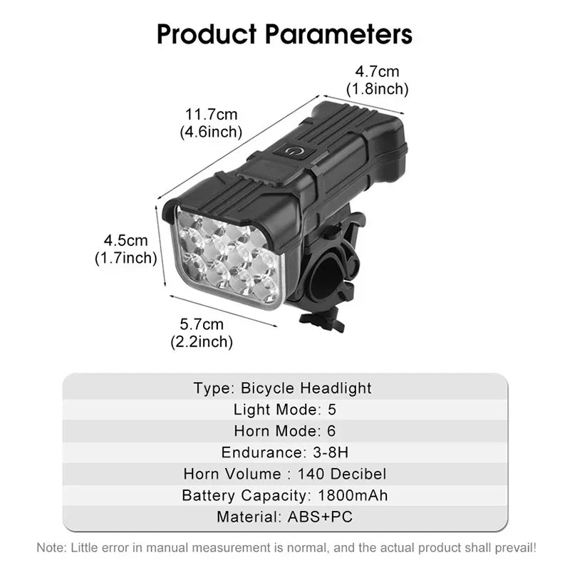 - Model: 12 LED Bicycle Headlights with Horn and Bell