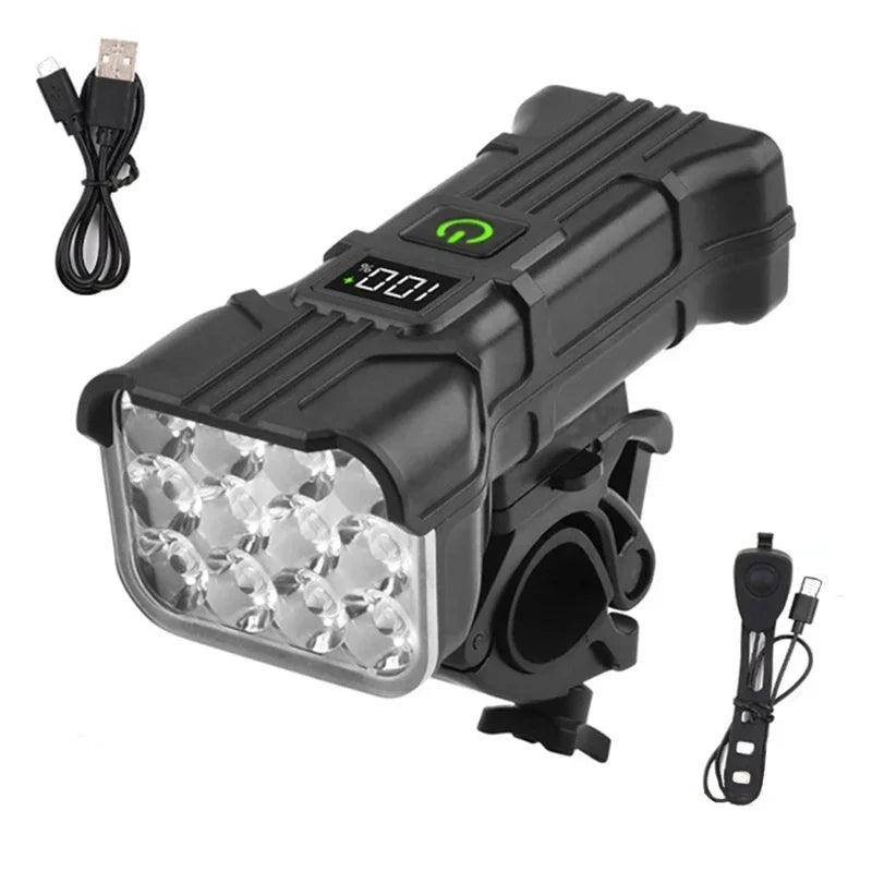 Powered by an 18650 cell battery (approximately 1200 mAh), the light charges in around four hours and offers versatile modes to suit your ride: Strong, Weak, Weak, Flash, and Slow Flash. A convenient power display helps you monitor battery life so you’re never left in the dark. The black exterior provides a sleek, low‑profile look, while the quick‑release mounting bracket makes it easy to remove the light when you park or carry your bike indoors. This package includes the headlight and a charging cable for ready-to-use performance straight out of the box.