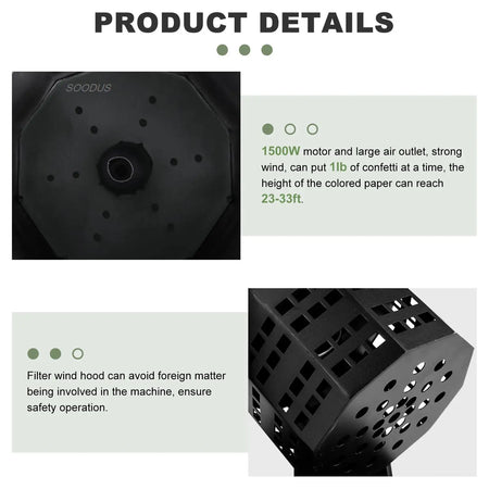 1500W Professional Confetti Machine with Remote Control for DJ Events, Stage Show, Wide Air Output