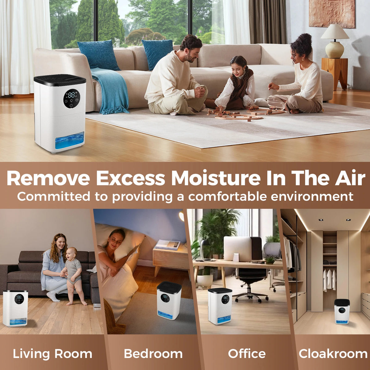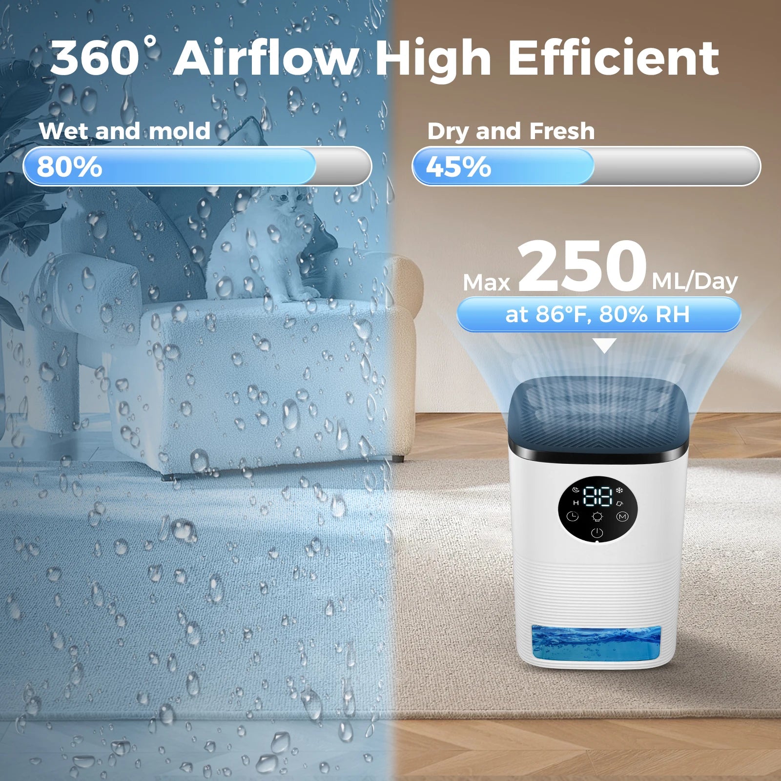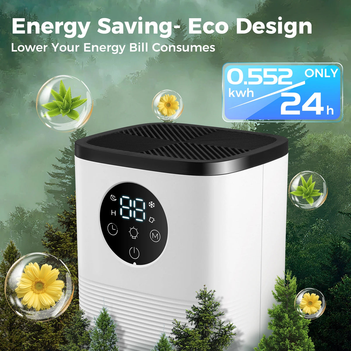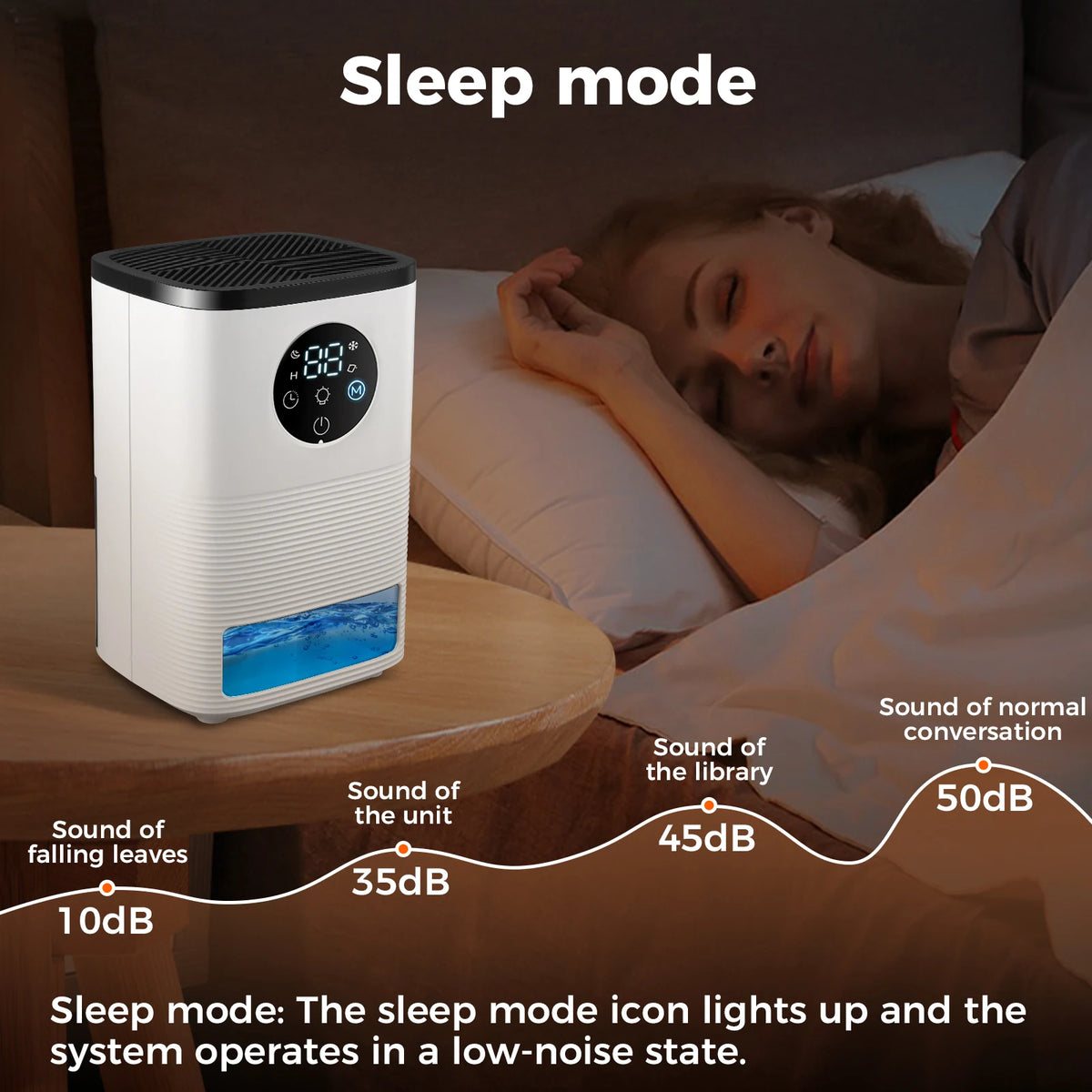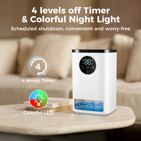 Experience a compact, energy-saving solution to indoor humidity with the Jugacool 1600ml Dehumidifier. Designed for small spaces like bedrooms, bathrooms, kitchens, RVs, and cabinets, this ultra-quiet unit uses advanced semiconductor refrigeration (Peltier) technology to remove excess moisture without disturbing your daily life. The large 1600 mL water tank means fewer refills, while auto shut-off protects against spills. Add a warm, ambient glow with 7 color lights and you’ve got a practical, stylish dehumidifier that doubles as soft night-light.
