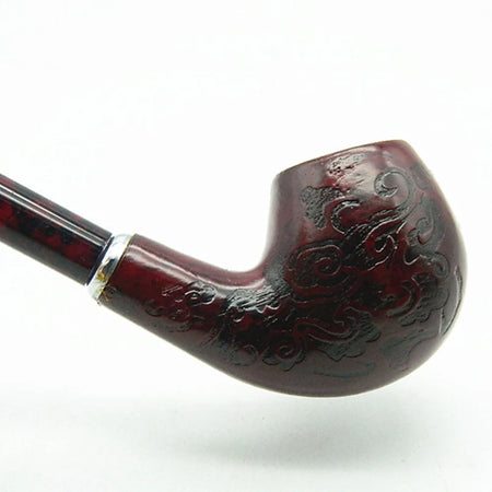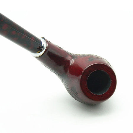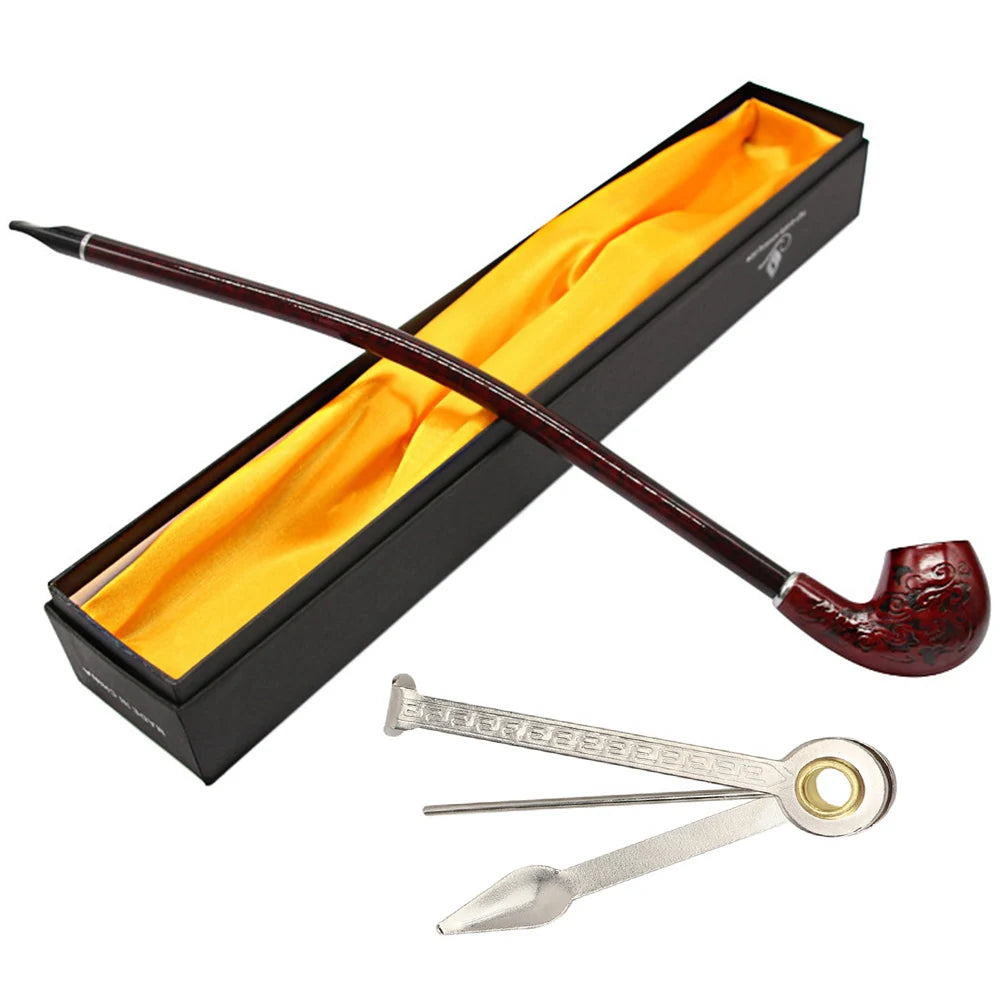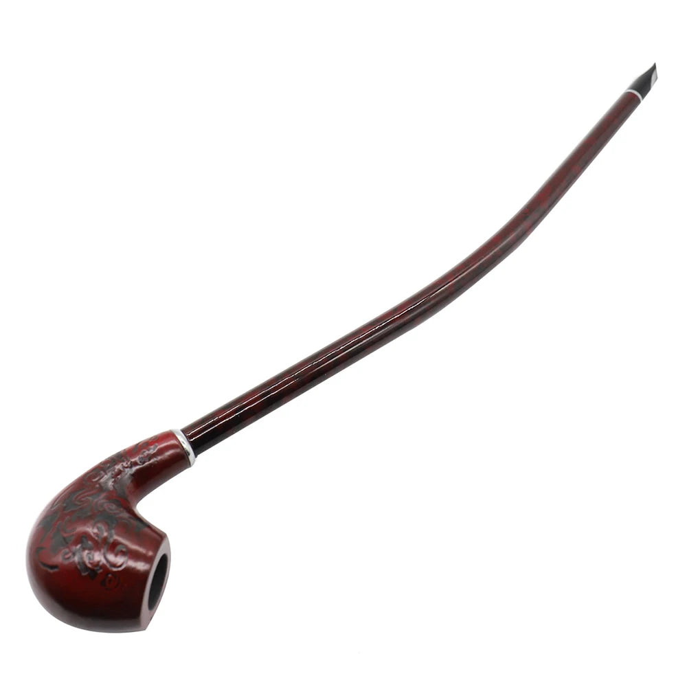 Fashioned with care, the pipe features carved classical flower patterns and a long retro handle that evoke a refined, vintage aesthetic. The detachable mouthpiece simplifies cleaning, helping you keep the pipe in optimal smoking condition with less effort. Note that the bowl itself is not detachable, emphasizing a sturdy, traditional design that rewards careful use and routine maintenance.