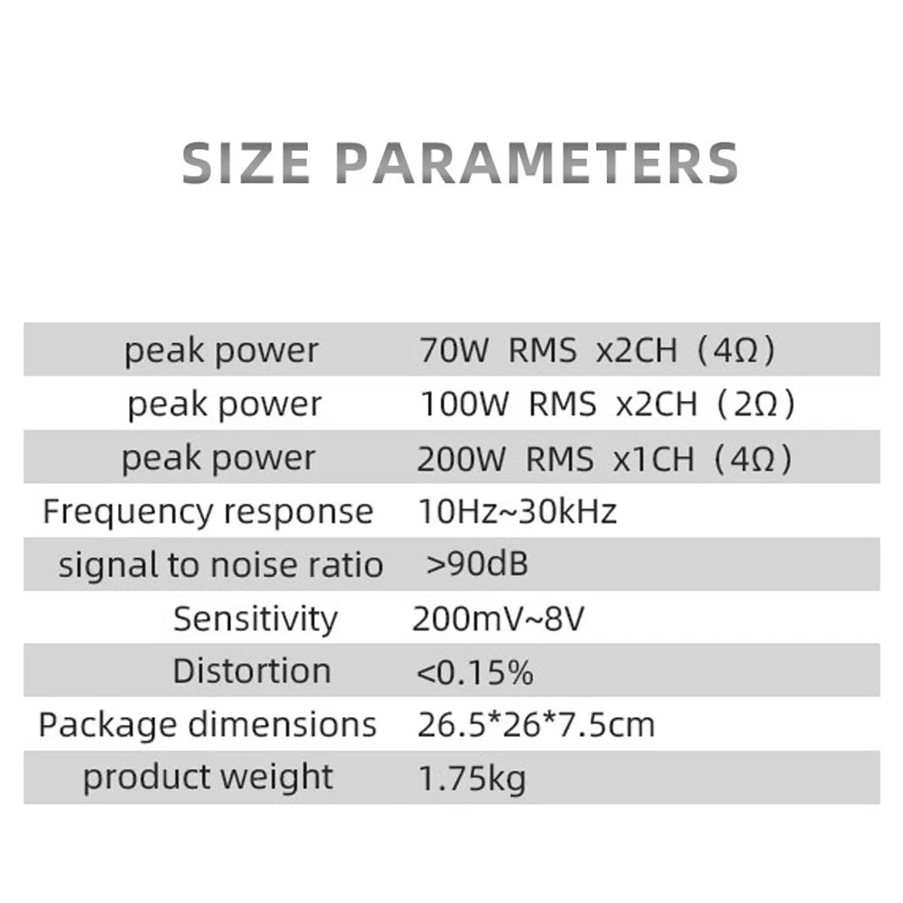 - Power Output: 2 x 70W (into 2/4 ohms)