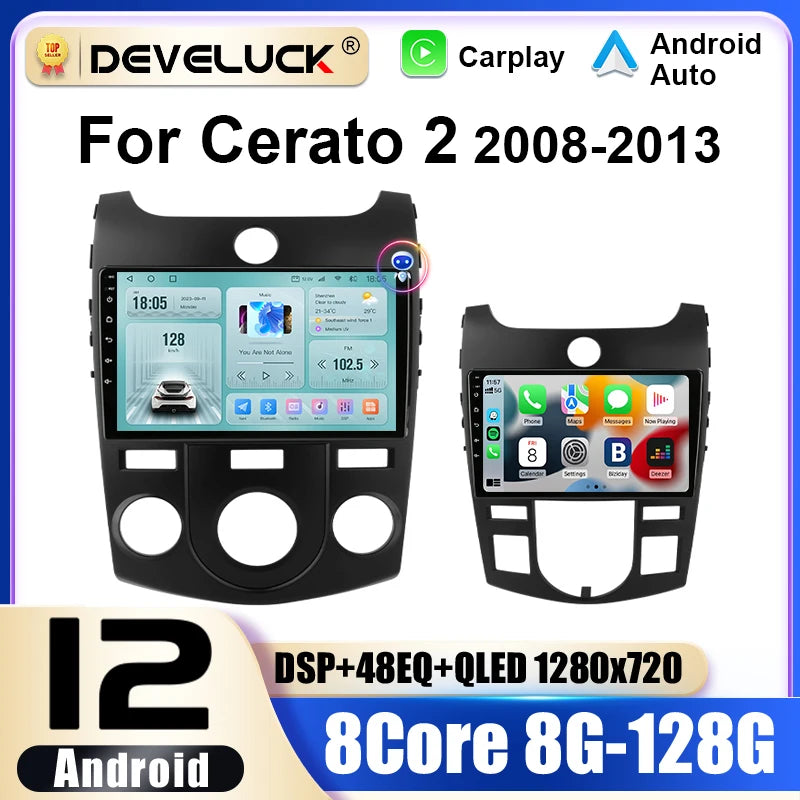 Upgrade your Kia Forte Cerato (2010–2013) with a 2 Din Android 12 Car Stereo designed to fit seamlessly into your dashboard. This Develuck head unit brings GPS navigation, CarPlay, 4G connectivity, and a vibrant 9-inch QLED display to your everyday drive, making every journey safer, smarter, and more enjoyable. Experience smoother navigation, hands-free communication, and seamless app access right from your dash.