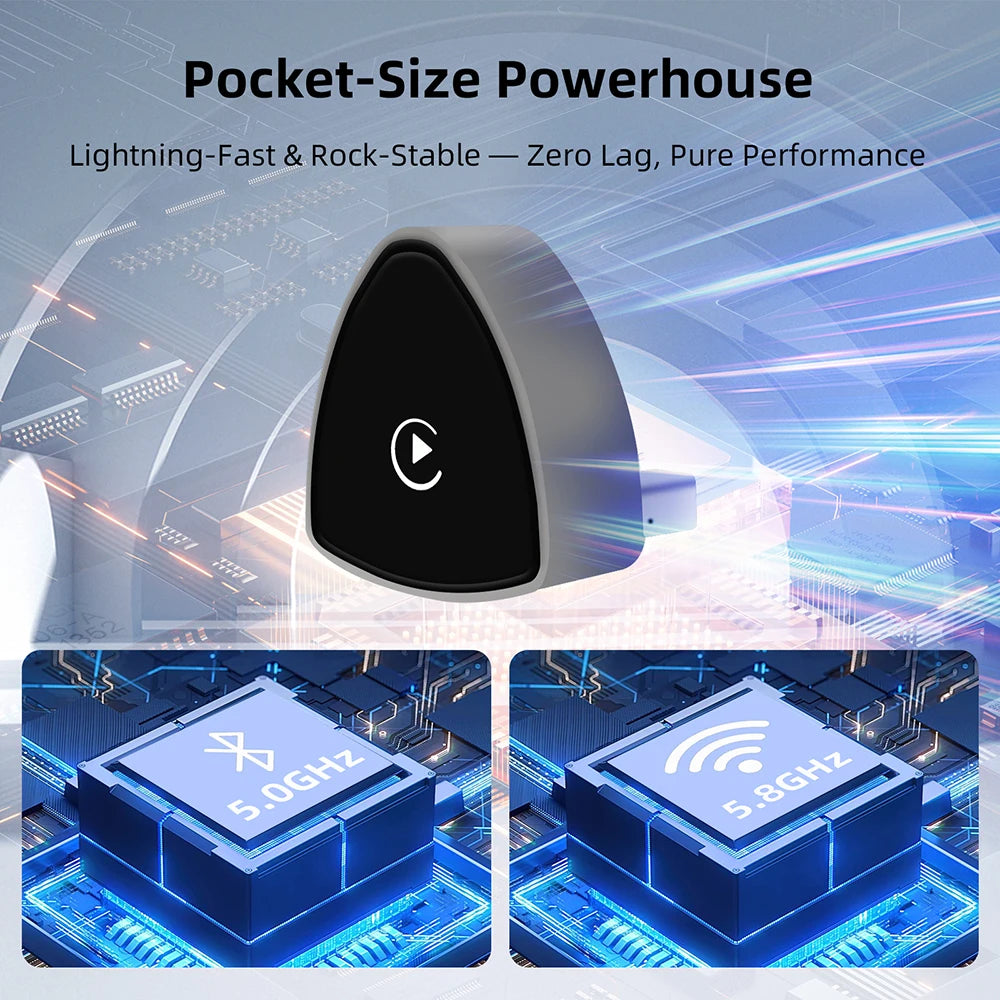 With 5.8GHz WiFi for a stable, fast connection and a user-friendly setup, this small adapter handles both ecosystems. It converts wired CarPlay to wireless so iPhone users get Siri, maps, and apps on the go, while also converting wired Android Auto to wireless for Google Assistant and GPS navigation. It’s plug-and-play: simply connect to the USB port for data transmission, then search for the device name on your phone to pair. OTA upgrades ensure the firmware can be updated to improve performance and add features over time.