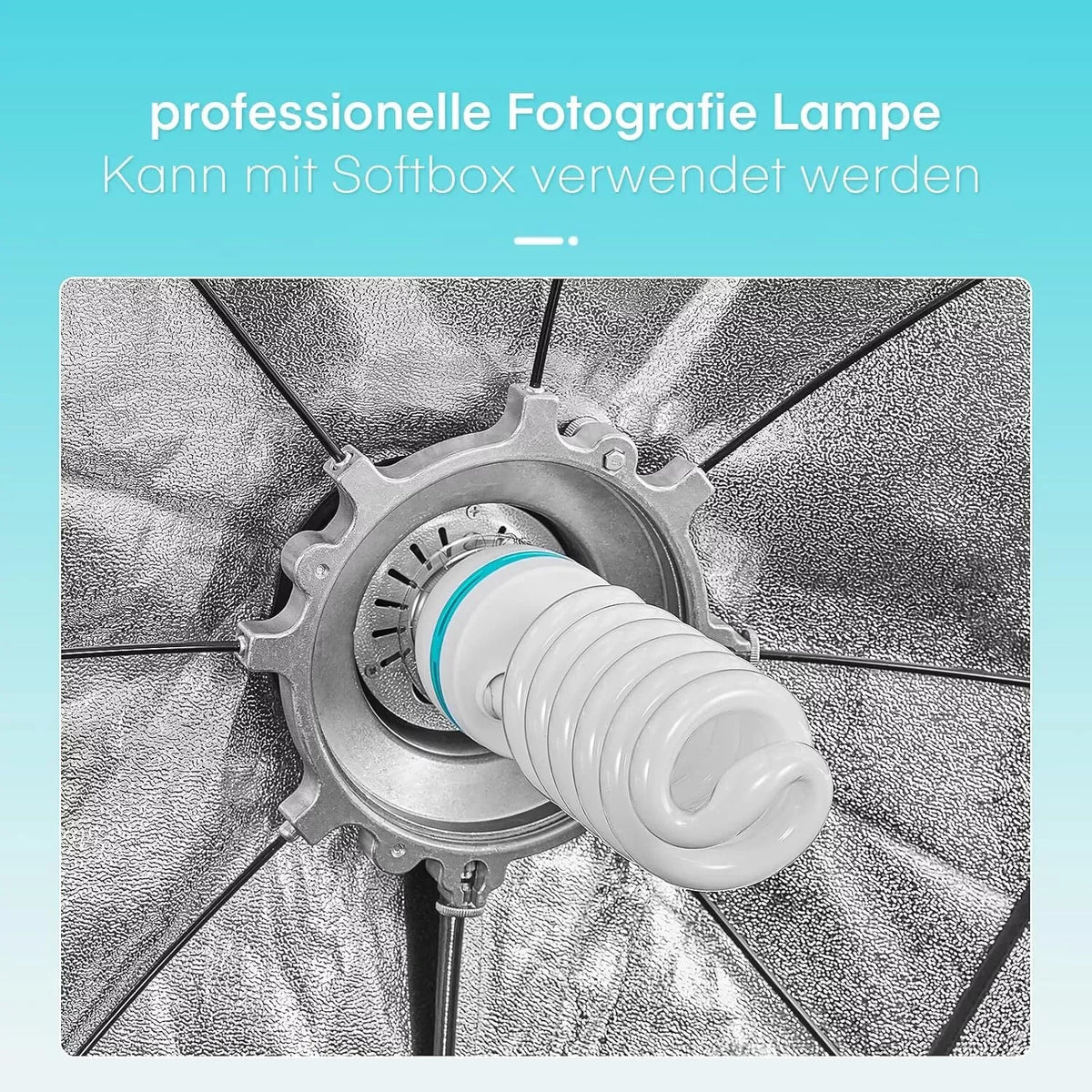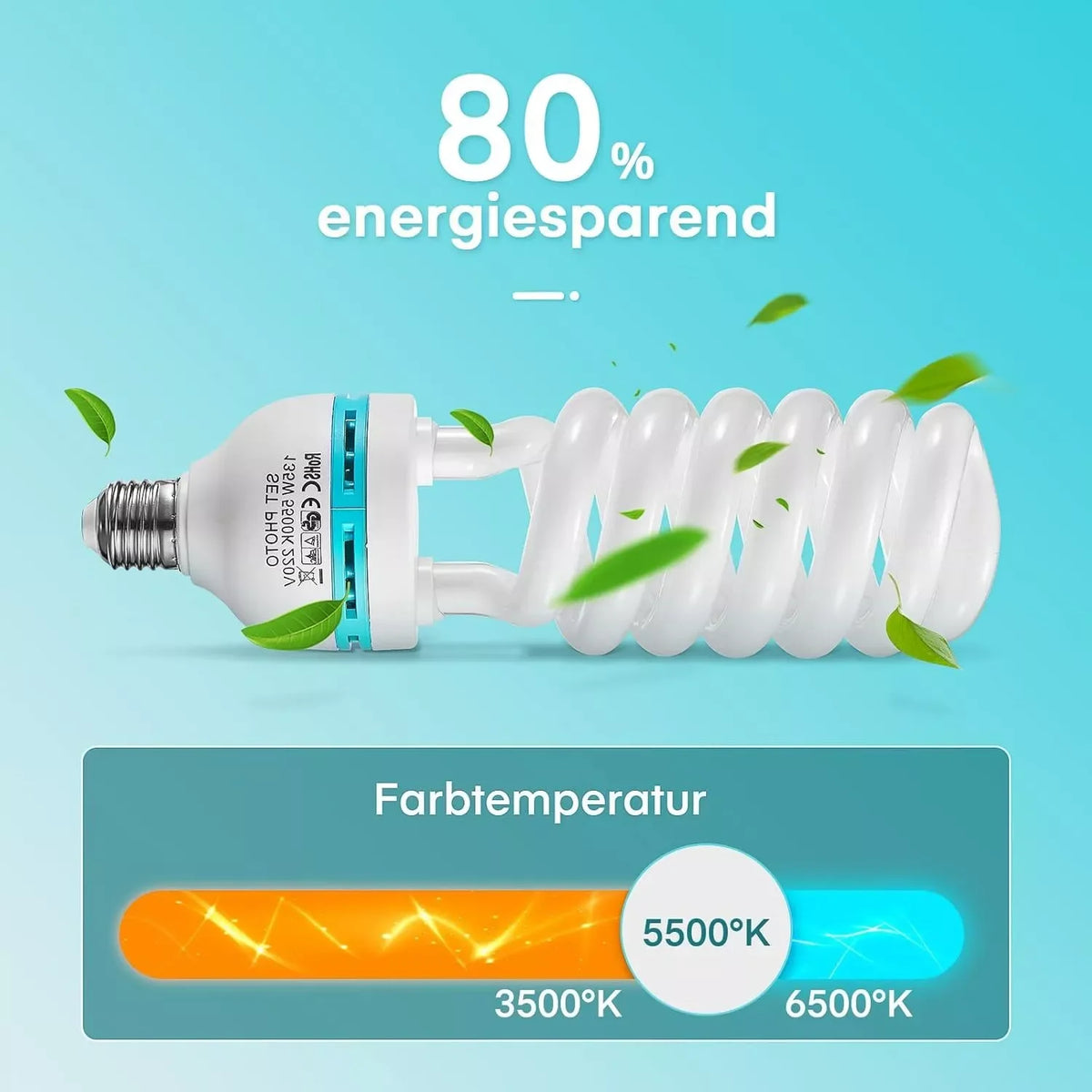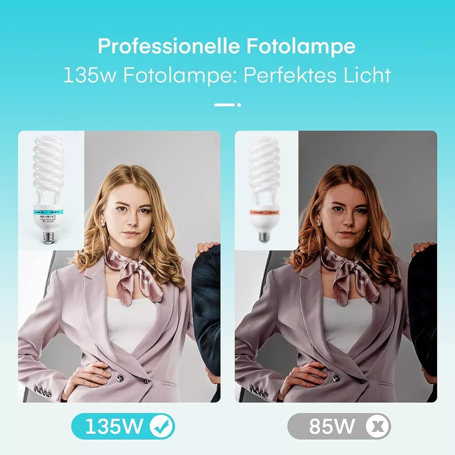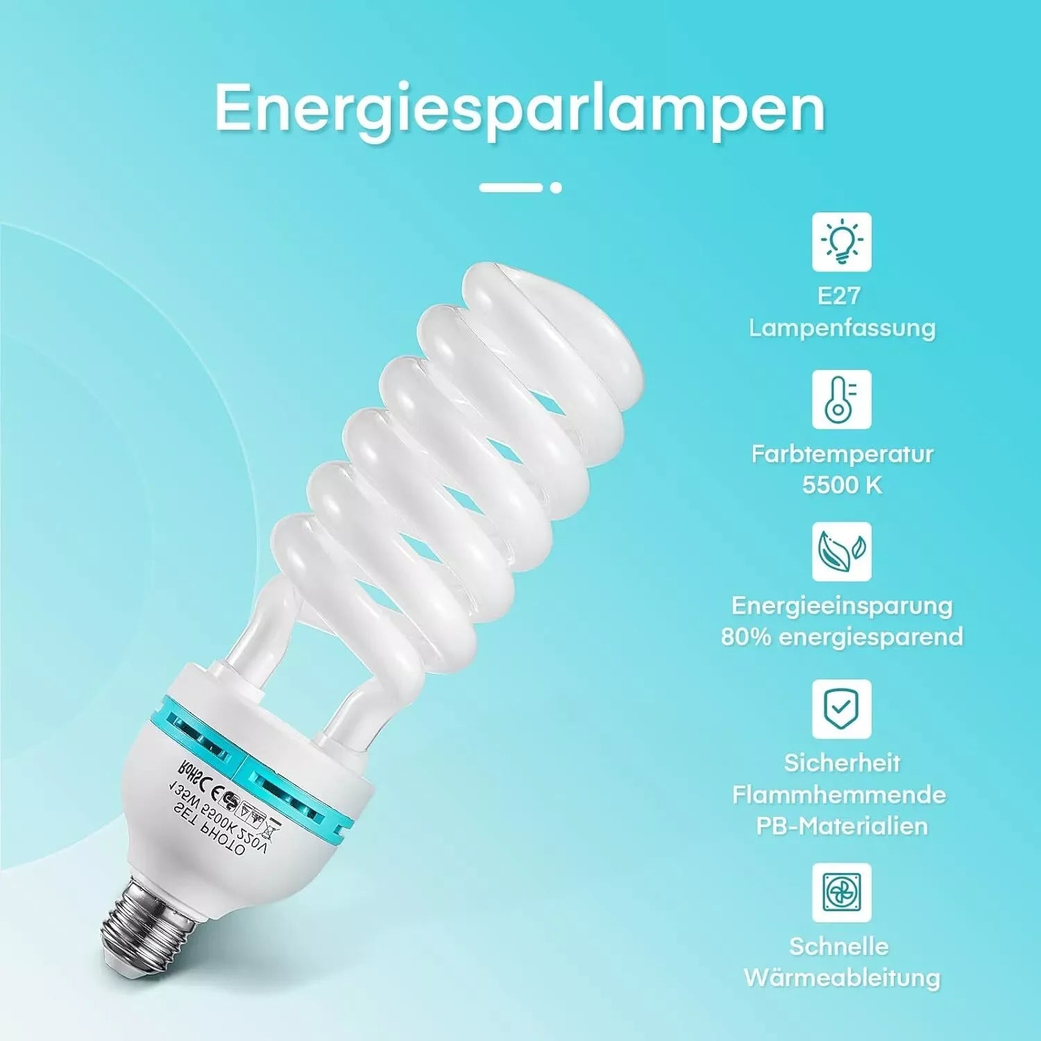 With an E27 socket, these spiral CFL lamps are compatible with softboxes, photo tents, study sets, umbrella reflectors, and a range of photographic lighting gear. The brass interface ensures reliable conductivity, while the built-in heat-dissipation design and powder-coated finish resist high temperatures and wear. The kit is ideal for studio use and product photography, providing consistent, wide-area light that reduces post-processing time.