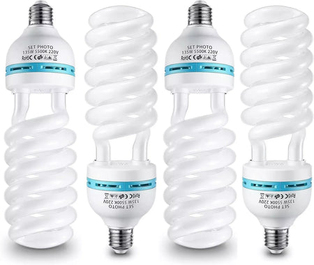 Meet the 2Pcs 135W 5500K CFL Daylight Spiral Softbox Kit E27 — a compact, energy-saving lighting solution designed for professional-grade photography in studios and home setups. This double-lamp kit delivers bright daylight (5500K) with excellent color accuracy, helping you capture true-to-life product, fashion, and portrait images without the harsh shadows of traditional lighting.