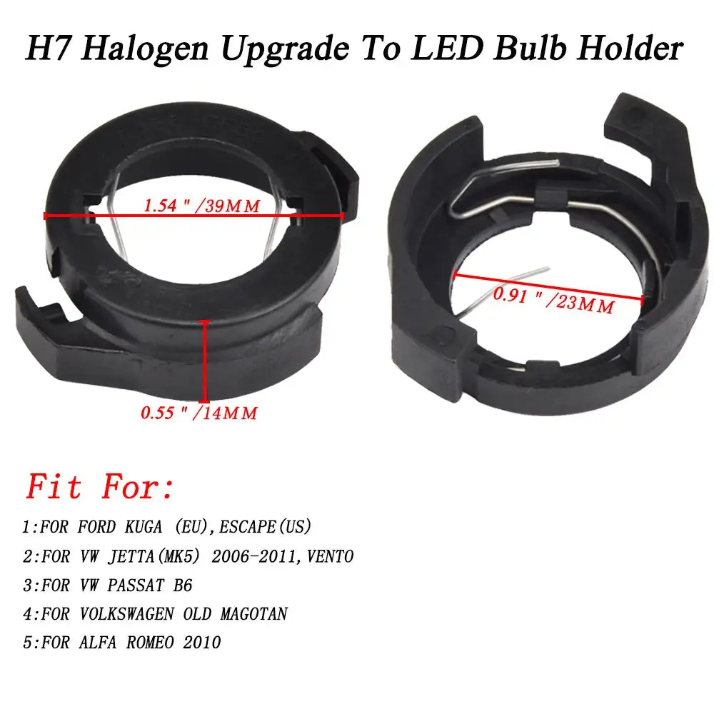 2Pcs H7 LED Headlamp Socket Adapters For Ford Kuga Escape