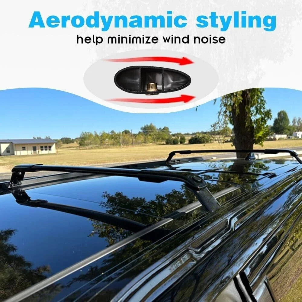 Upgrade your Jeep Grand Wagoneer L (2022–2024) with these heavy-duty aluminum roof rack cross bars. These crossbars are lightweight yet robust, designed to carry oversized cargo while preserving fuel efficiency and reducing wind noise thanks to a streamlined water-drop design. The bars feature adjustable grips to fit the car’s raised roof side rails and include locking hardware for anti-theft security. With easy, drill-free installation, you can mount them in minutes and start carrying kayaks, luggage, snowboards, skis, bikes, fishing poles, and more. The cross bars are black and made from high-grade aluminum, with durable plastic base feet for a secure fit.