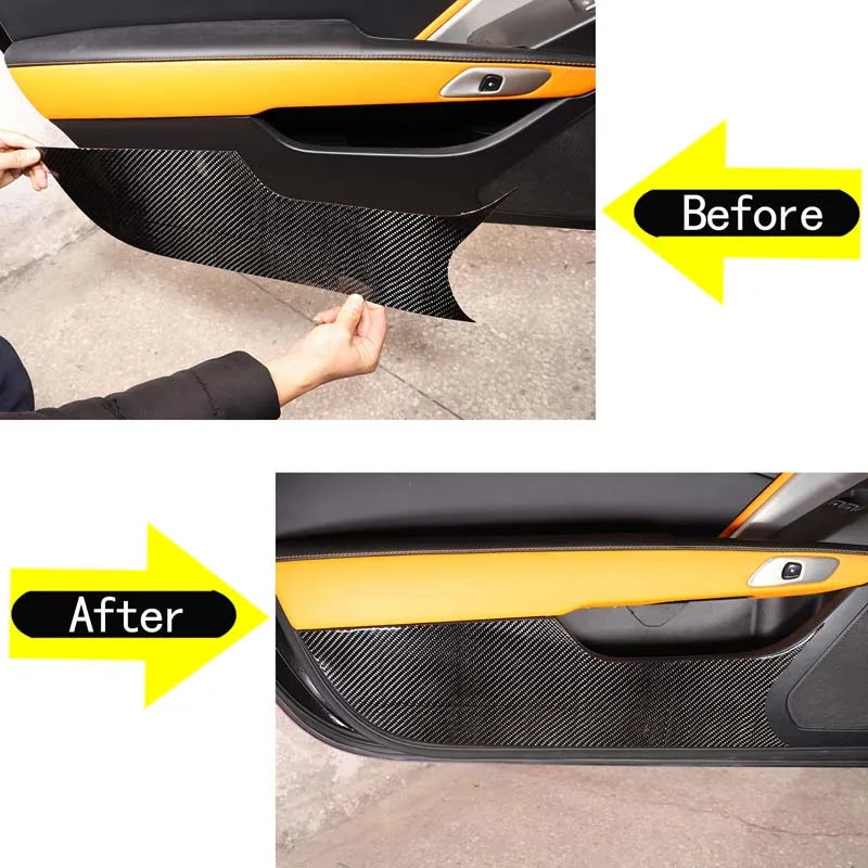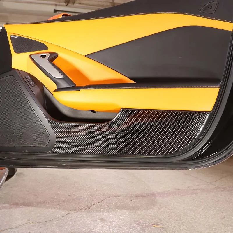 2Pcs Soft Carbon Fiber Door Kick Panel Cover For Corvette C7