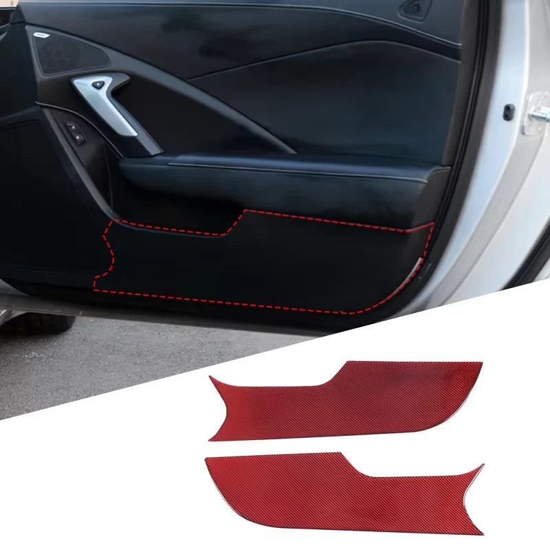 Upgrade your Corvette C7 interior with 2Pcs Soft Carbon Fiber Door Kick Panel Covers. Crafted from Real Carbon Fiber (Soft), these panels protect door sills from scratches and wear while delivering a premium carbon-fiber aesthetic. Designed for 2014-2019 Chevrolet Corvette C7, they install quickly thanks to the back-side automotive adhesive tape. The red color with carbon fiber finish adds a bold, sport-ready accent to your cabin. Each piece is 100% new with box and manufactured in Mainland China under ISO9001 quality control.