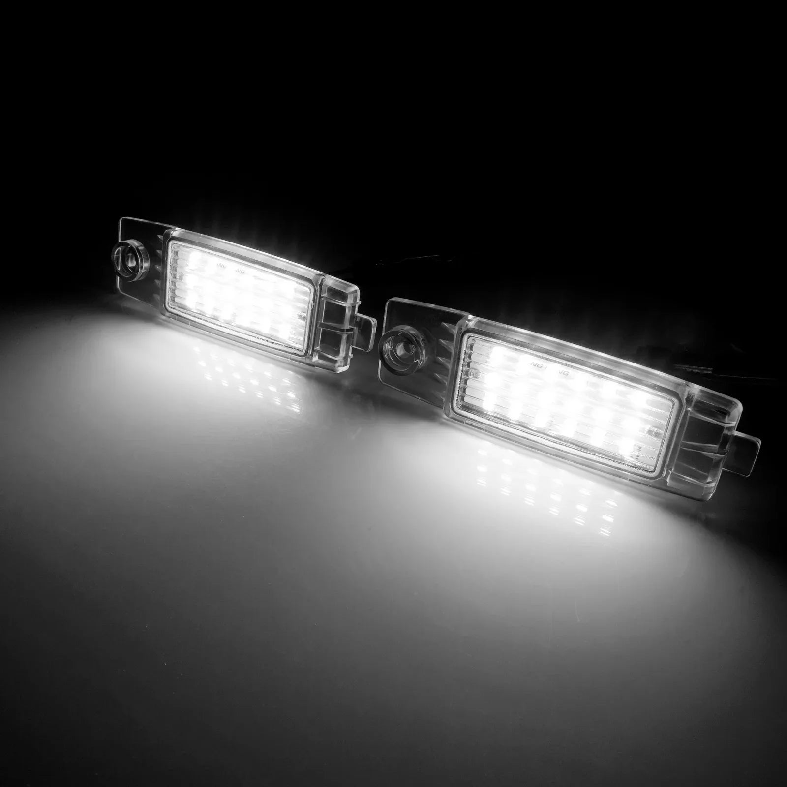 Designed for a true plug‑and‑play install, these lights fit into the original license plate housing with no wiring or modification needed. They include built‑in load resistors and a CANbus control unit to prevent OBC warning codes on compatible vehicles, so you won’t see warning lights after upgrading.