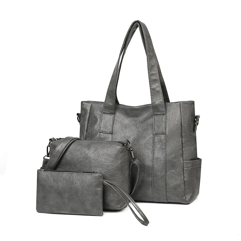 - Versatile three-piece set gives you different bag options to match any outfit or occasion—shoulder, crossbody, and tote-style carry.