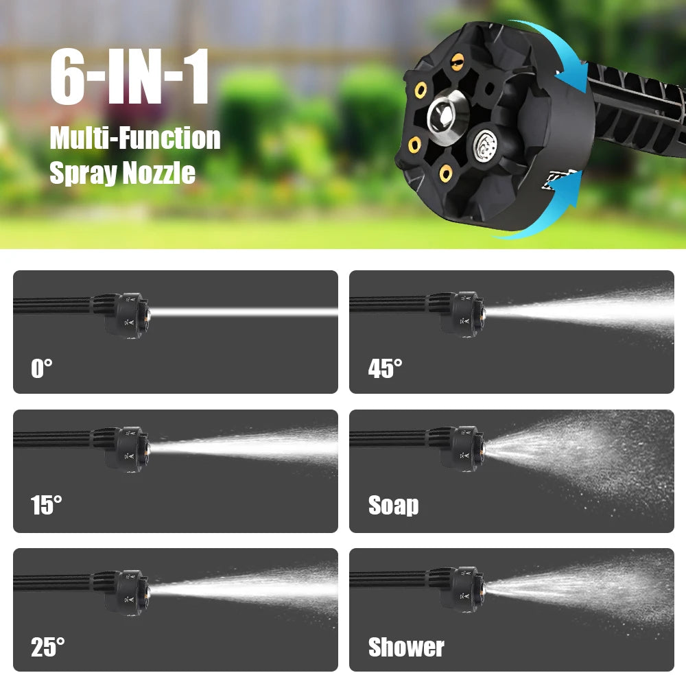 - Garden care: Perfect for watering flowers and vegetables with adjustable pressure and easy nozzle changes.