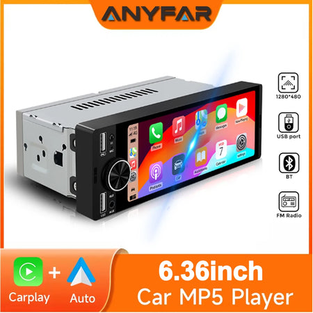 Upgrade your ride with the ANYFAR 1 Din Car Stereo, a compact, feature-packed head unit designed for universal 1DIN dashboards. The 6.5-inch HD touch screen delivers crisp visuals and intuitive control, turning your car into a connected, entertainment-friendly space. Enjoy seamless smartphone integration with wired and wireless CarPlay and Android Auto, giving you map navigation, hands-free calling, messaging, and apps right on the dash. Mirror your iPhone or Android device via USB to view videos or photos on the car screen, making road trips more engaging. Built-in Bluetooth supports hands-free calls, contact download, and BT music playback, helping you stay connected without taking your hands off the wheel. Use a USB drive (U Disk) to store songs and media, and switch between multiple playback modes (USB, AUX, BT) with ease. The steering wheel control compatibility means you can adjust volume or change tracks without looking away from the road, while the reversing display provides a clear view during parking. Tailor the sound with 6 EQ modes (Jazz, Classic, Rock, Pop, Flat, User) and enjoy a wide FM radio selection with 18 presets for music and news on the go.