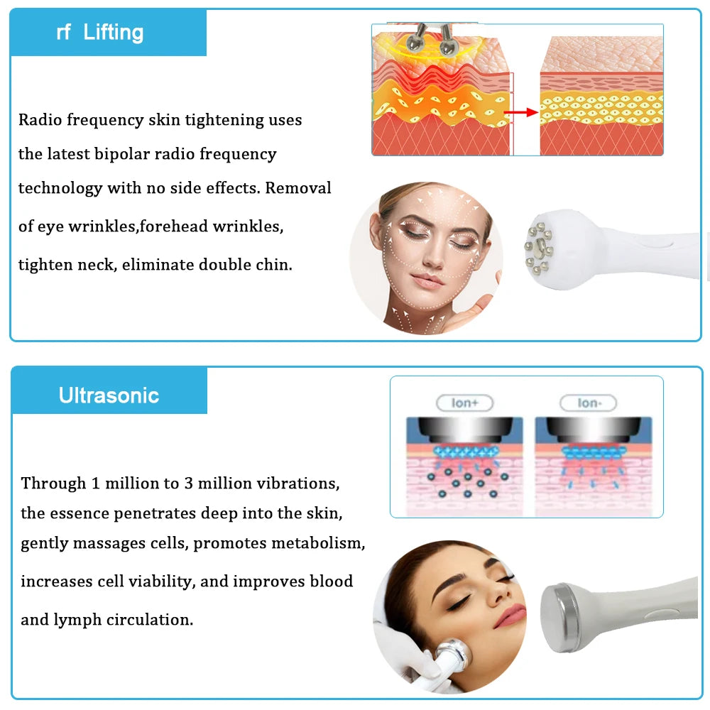 - Functions: Skin Rejuvenation, Skin Moisture, Skin Tightening, Facial Clean, Hot & Cold Massager