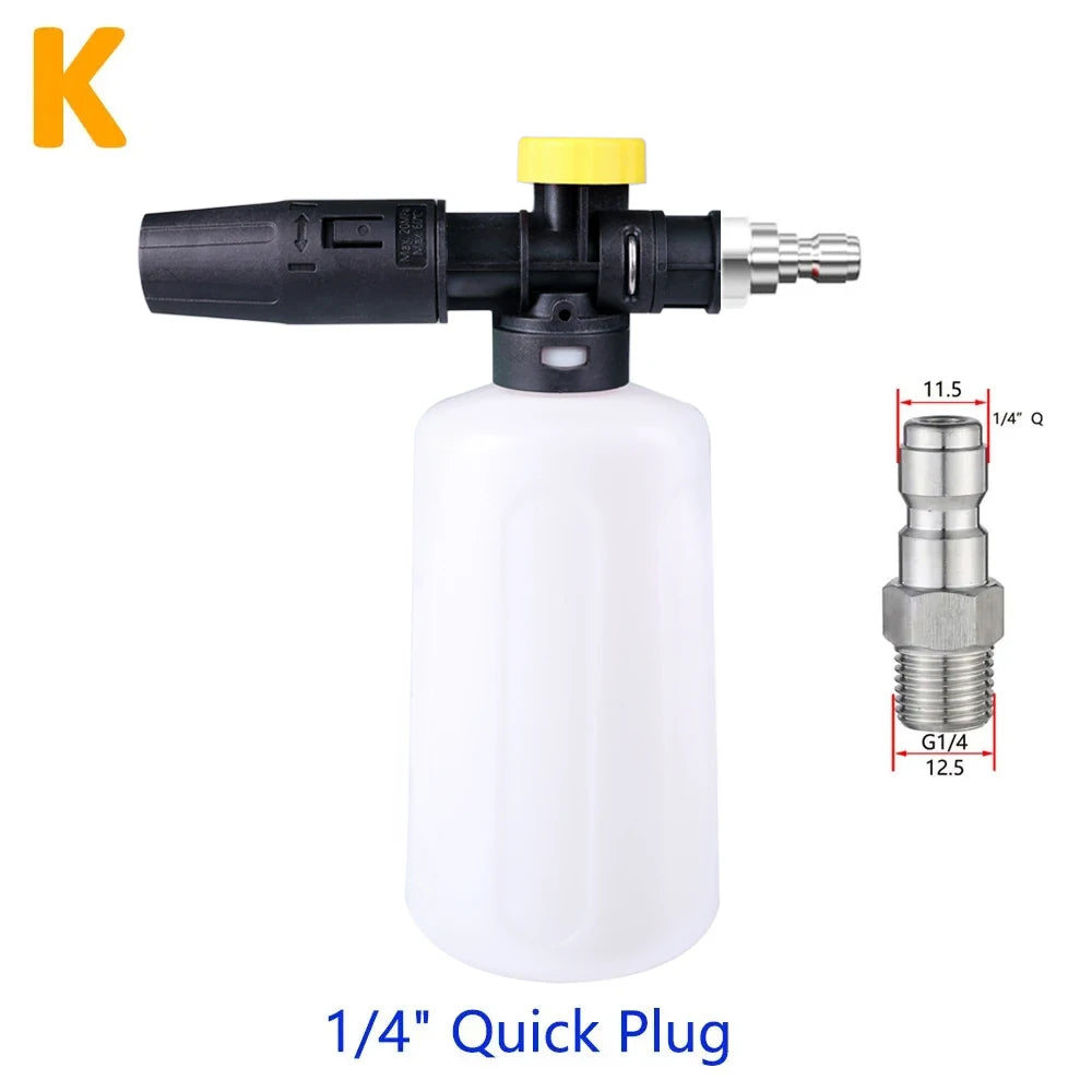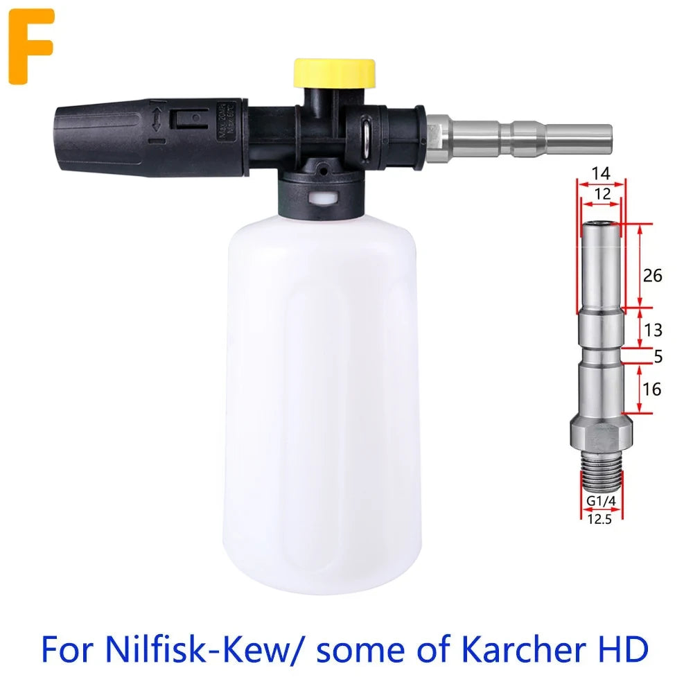 Experience a superior cleaning solution with our 750ml Car Wash Snow Foam Spear, compatible with major brands like Karcher, Nilfisk, Parkside, and more. Made from durable engineering plastic, this foam lance ensures long-lasting performance.
