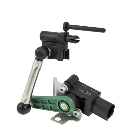 Upgrade or replace your VW Touareg's headlight leveling with this Front Axle Right Headlight Level Sensor from MAX NOLOGY. Built for vehicles equipped with automatic headlight leveling and air suspension, it uses a durable GRP (Glass Fibre Reinforced Plastic) housing and a secure 4-pin D-shaped connector to withstand the demands of the engine bay. The component is specifically designed for Touareg models in the 7P5/7P6 family and carries OEM part number 7P0616214. This kit includes the sensor along with the holder, coupling rod, and holding frame for a straightforward installation. By delivering precise height sensing, it maintains accurate headlamp alignment as the vehicle load or ride height changes, helping to preserve night visibility and reduce glare for oncoming drivers.