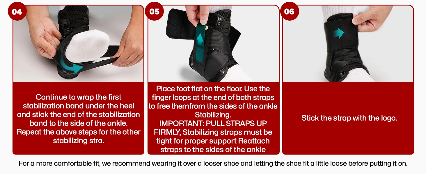 Important tips: Size Guide: Measure your ankle circumference before ordering (see size chart for exact measurements). Choose the correct size (XS/S/M/L) based on your measurement for a secure and comfortable fit. How to Wear Properly: Follow the step-by-step instructions to ensure optimal support and protection.