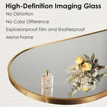 - Distortion-free full-body reflection with a sleek arched frame for accurate outfit checks.